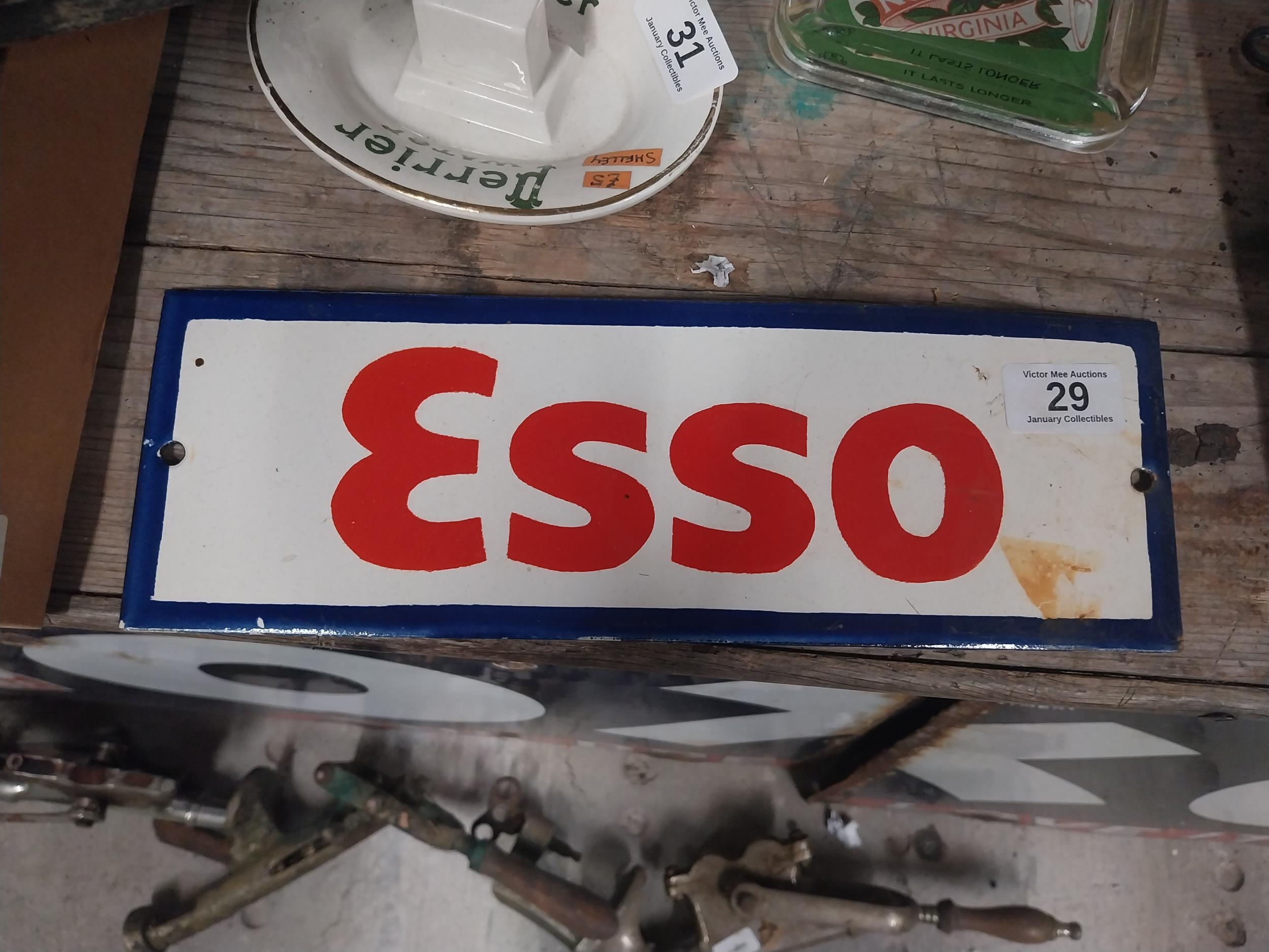 Esso enamel advertising sign. {10 cm H x 30 cm W}.