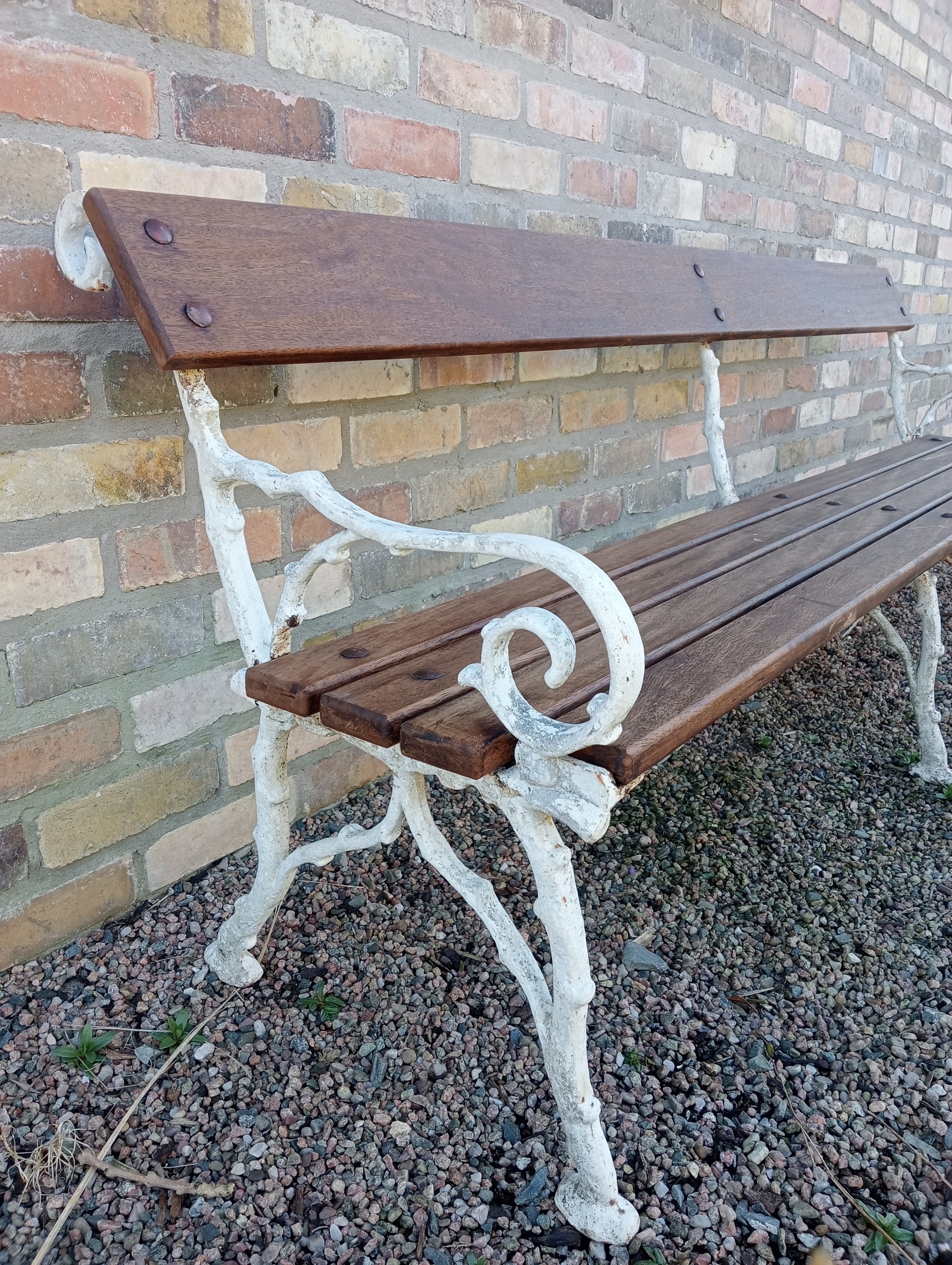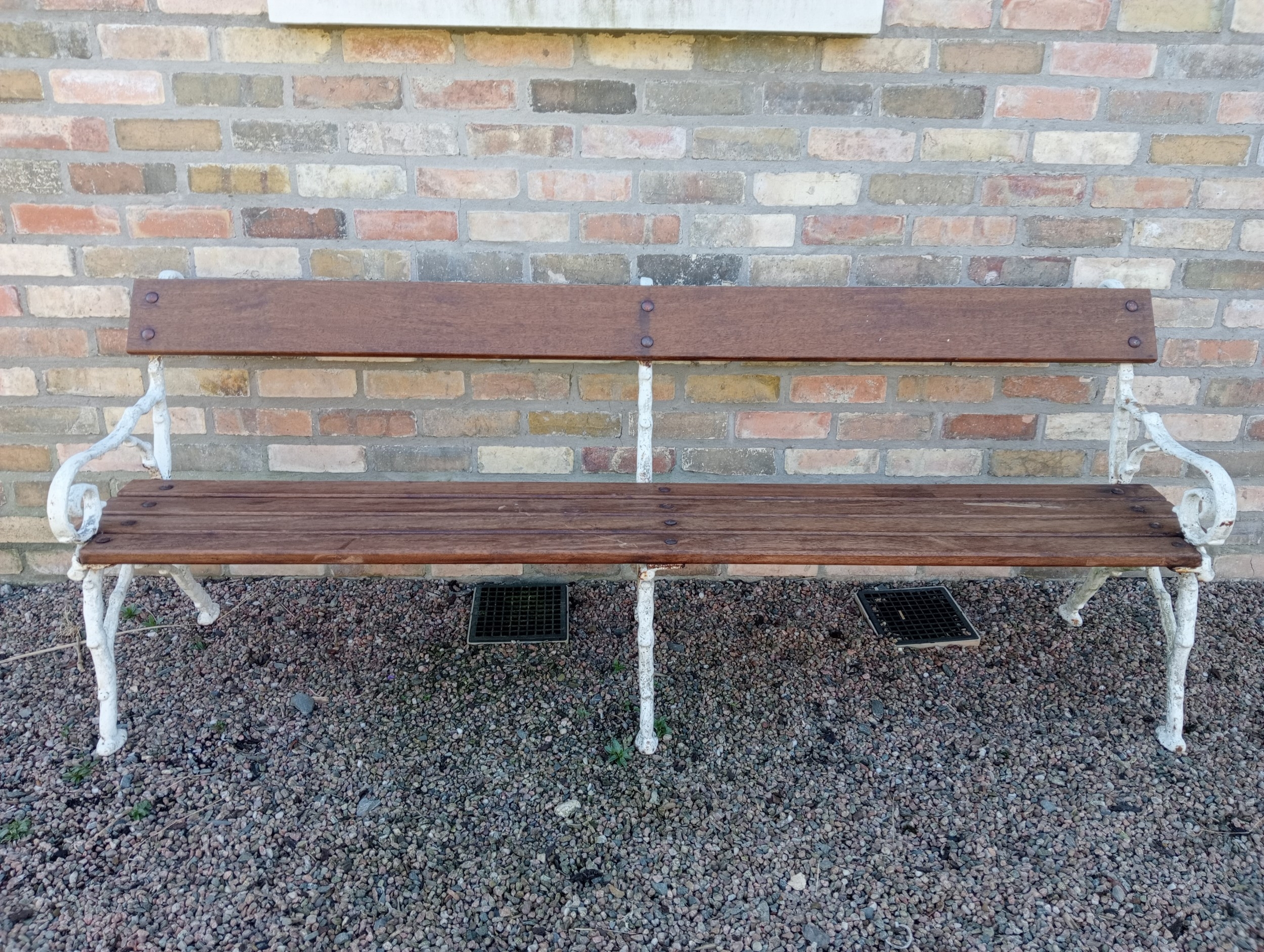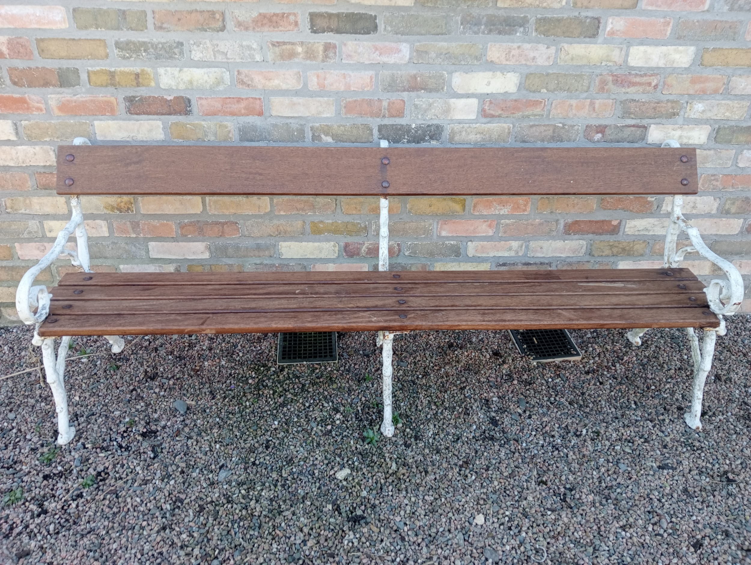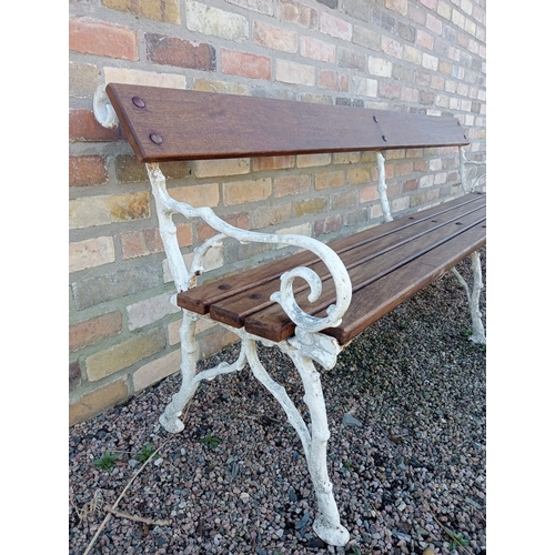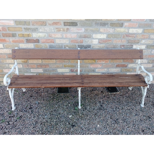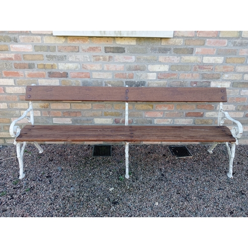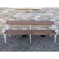 Cast iron bench with wood slated seat and back. (H 80cm x W 216cm x D 64cm )