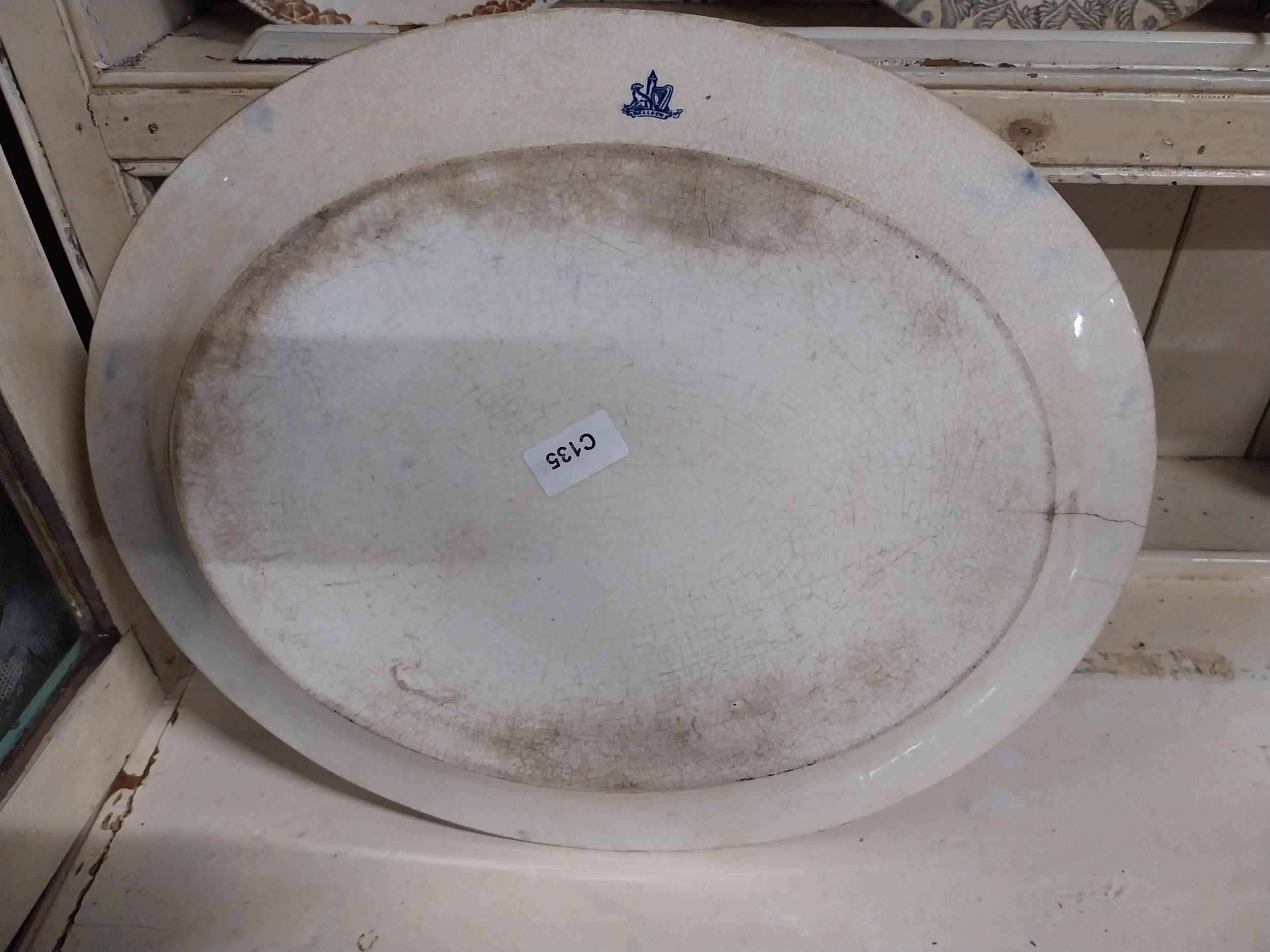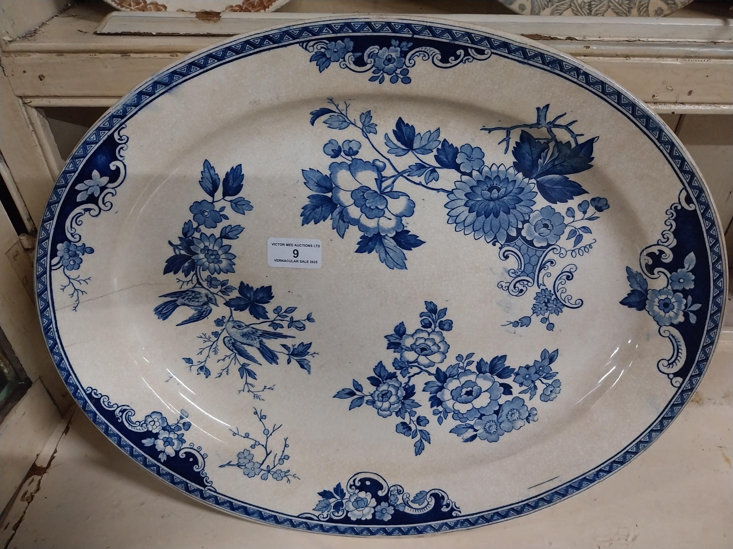 19th C. blue and white meat platter. {4 cm H x 46 cm W}.