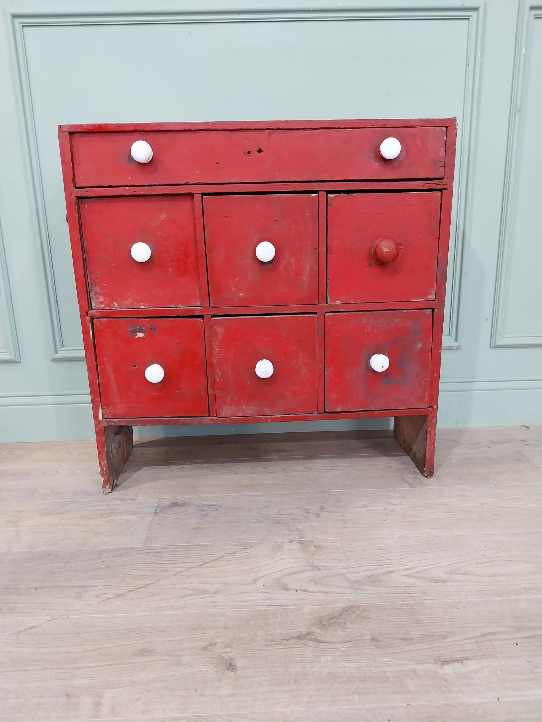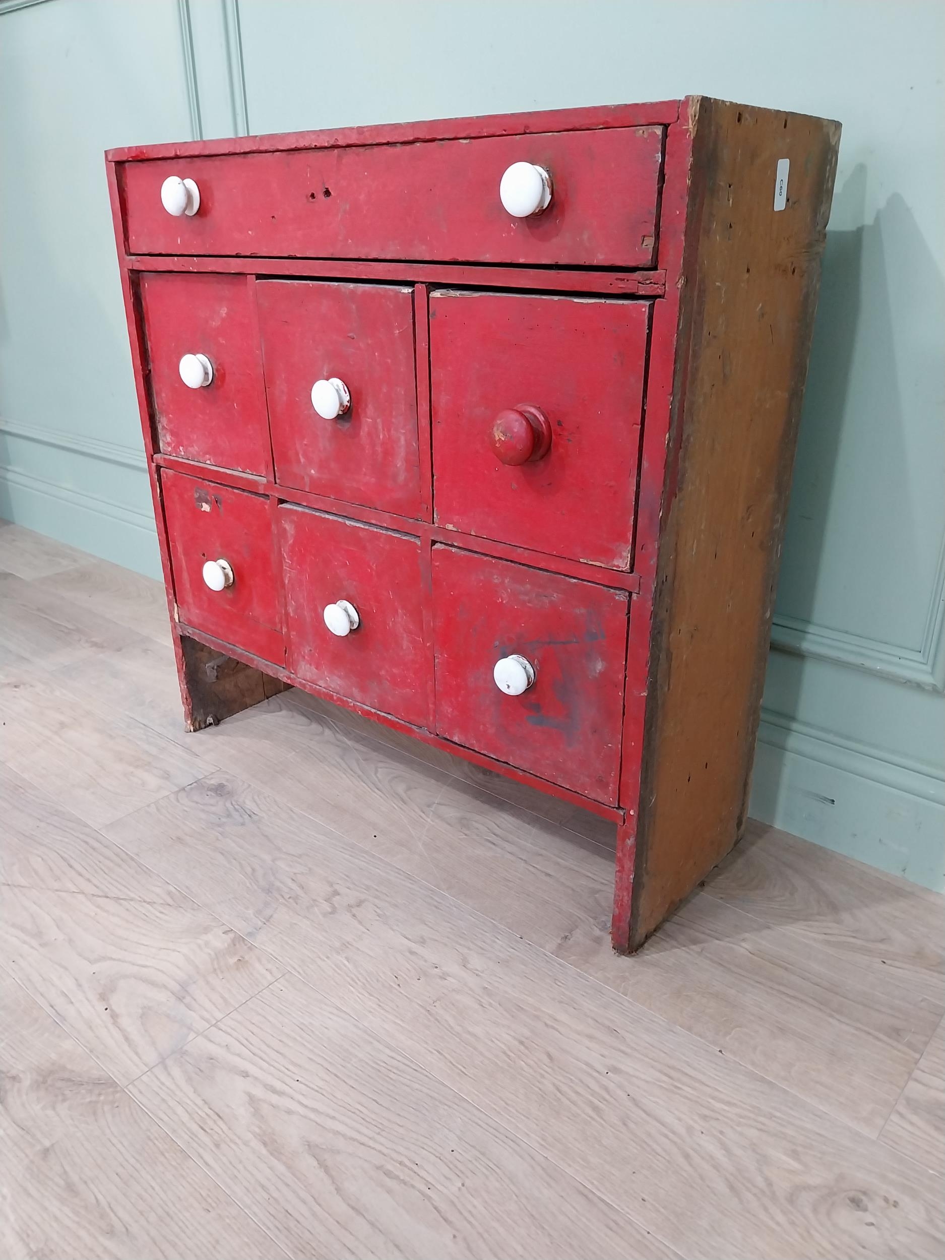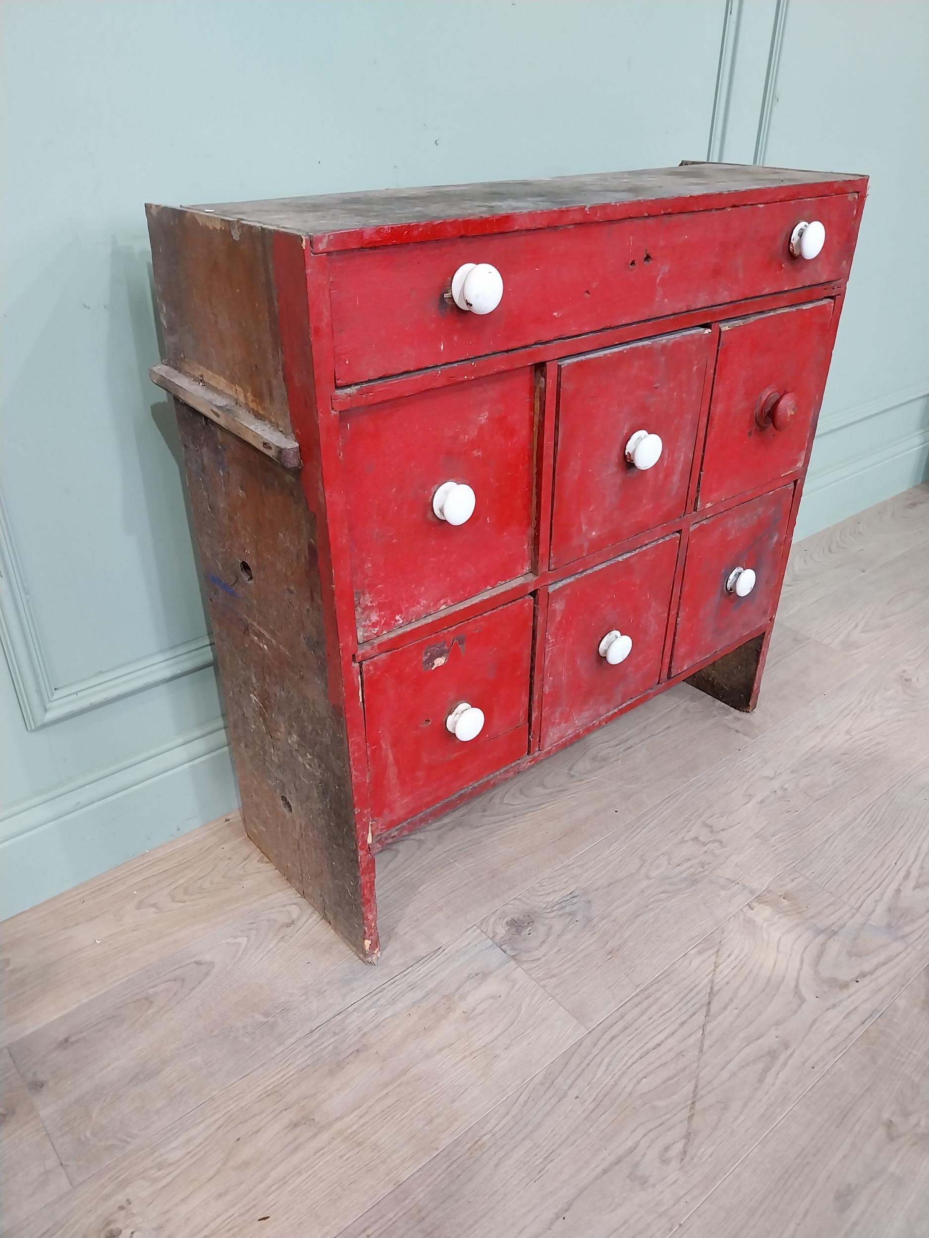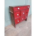 19th C. painted pine bank of nine drawers. {78 cm H x 76 cm W x 28 cm D}.