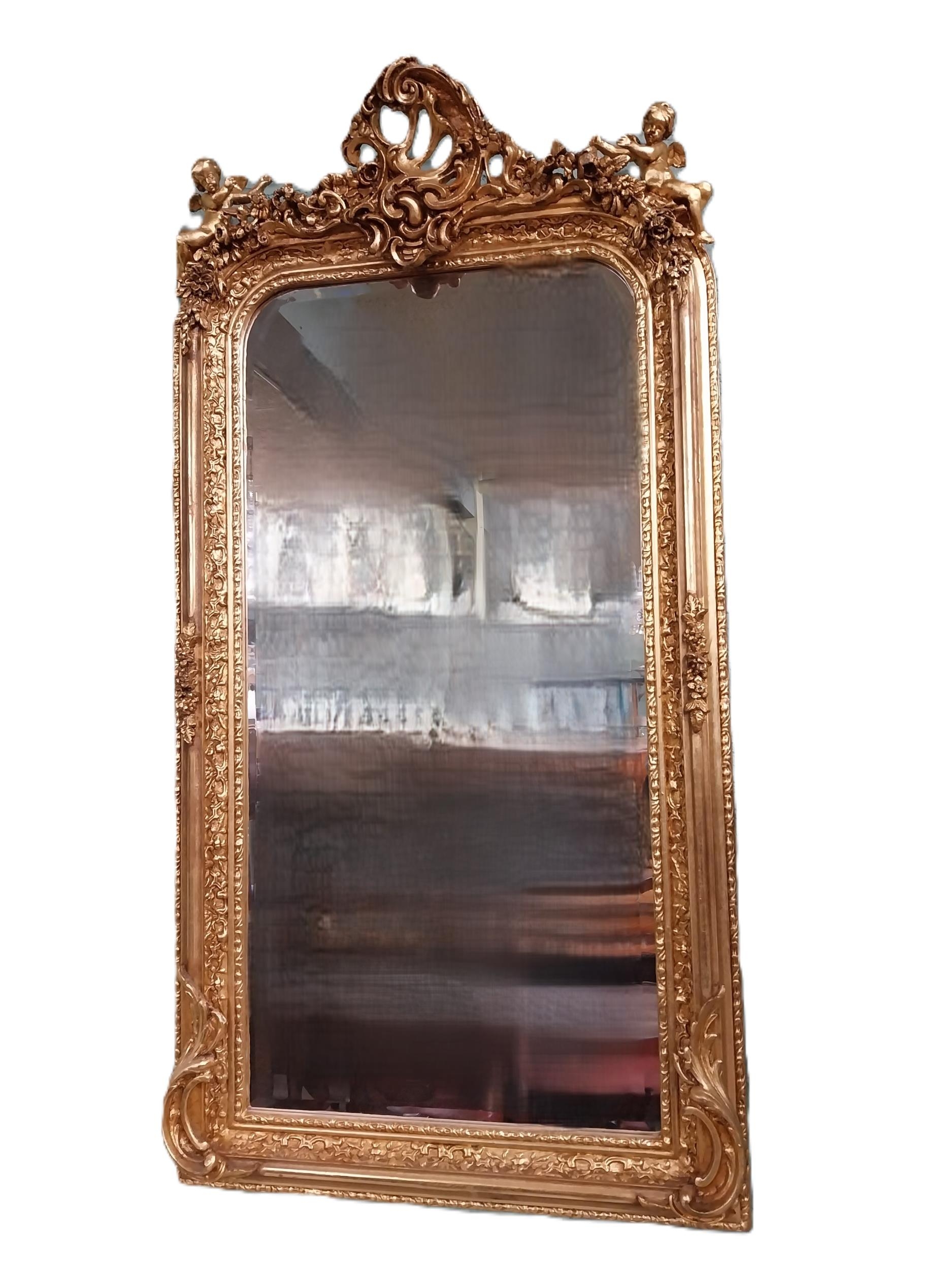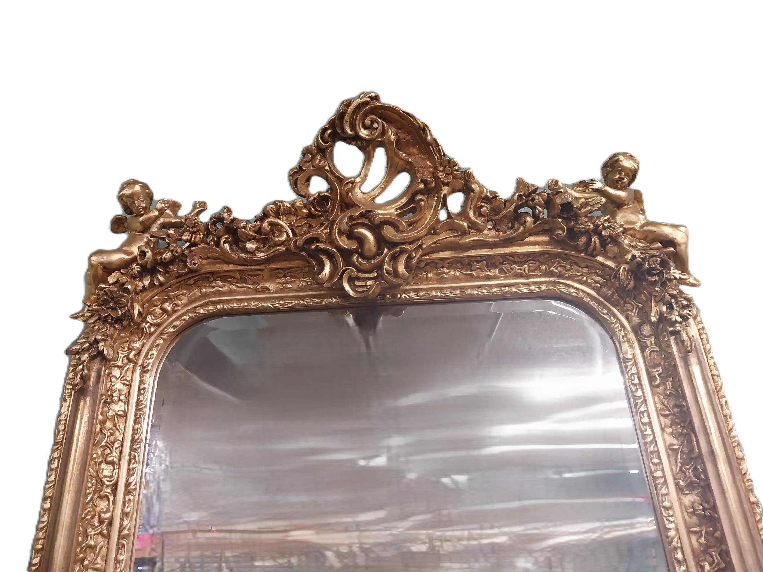 Decorative French gilt wall mirror. {158 cm H x 83 cm W}.