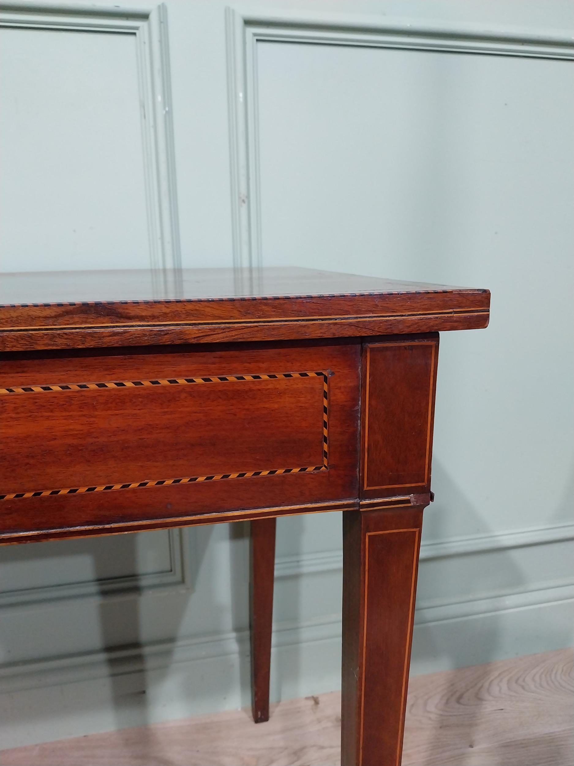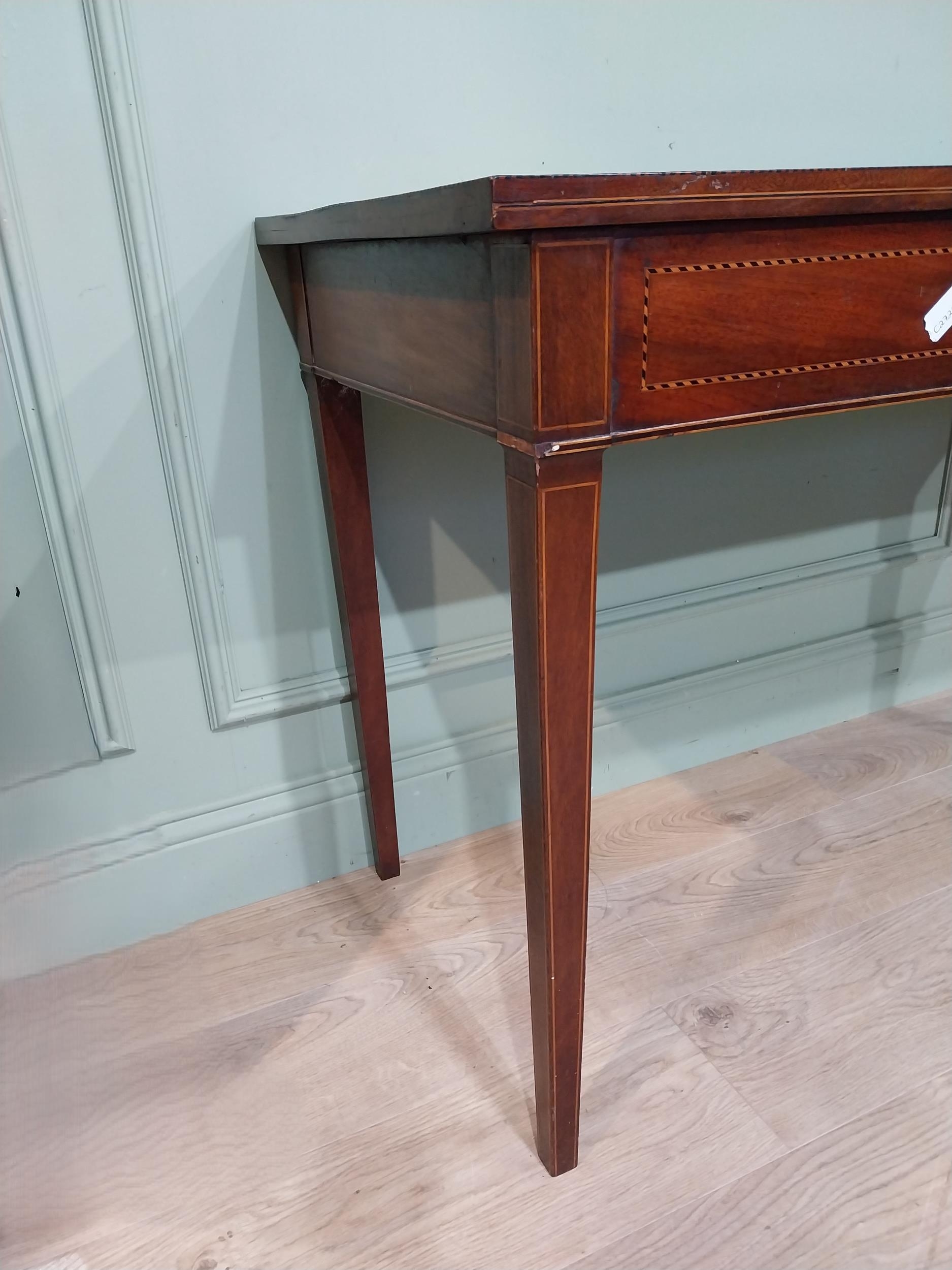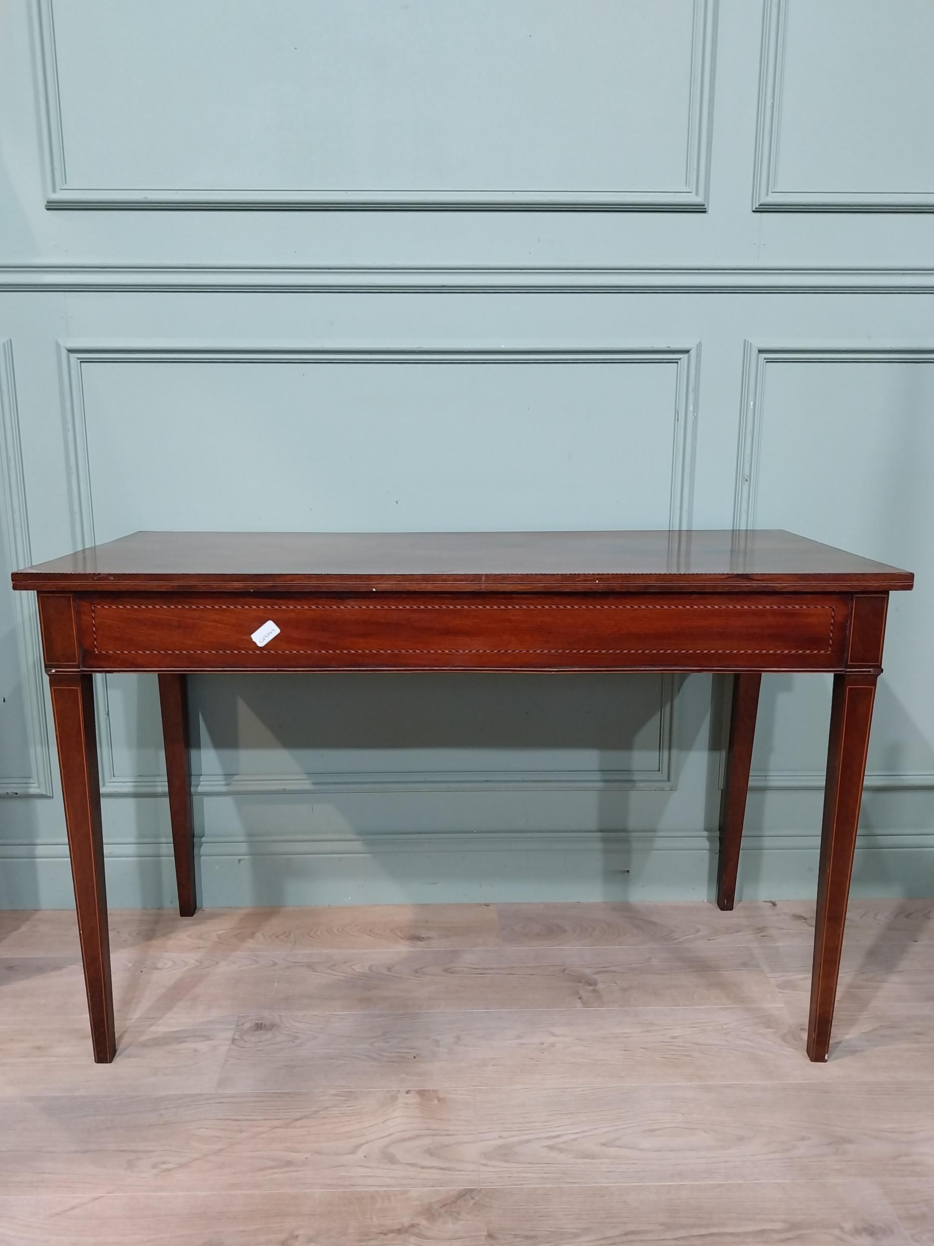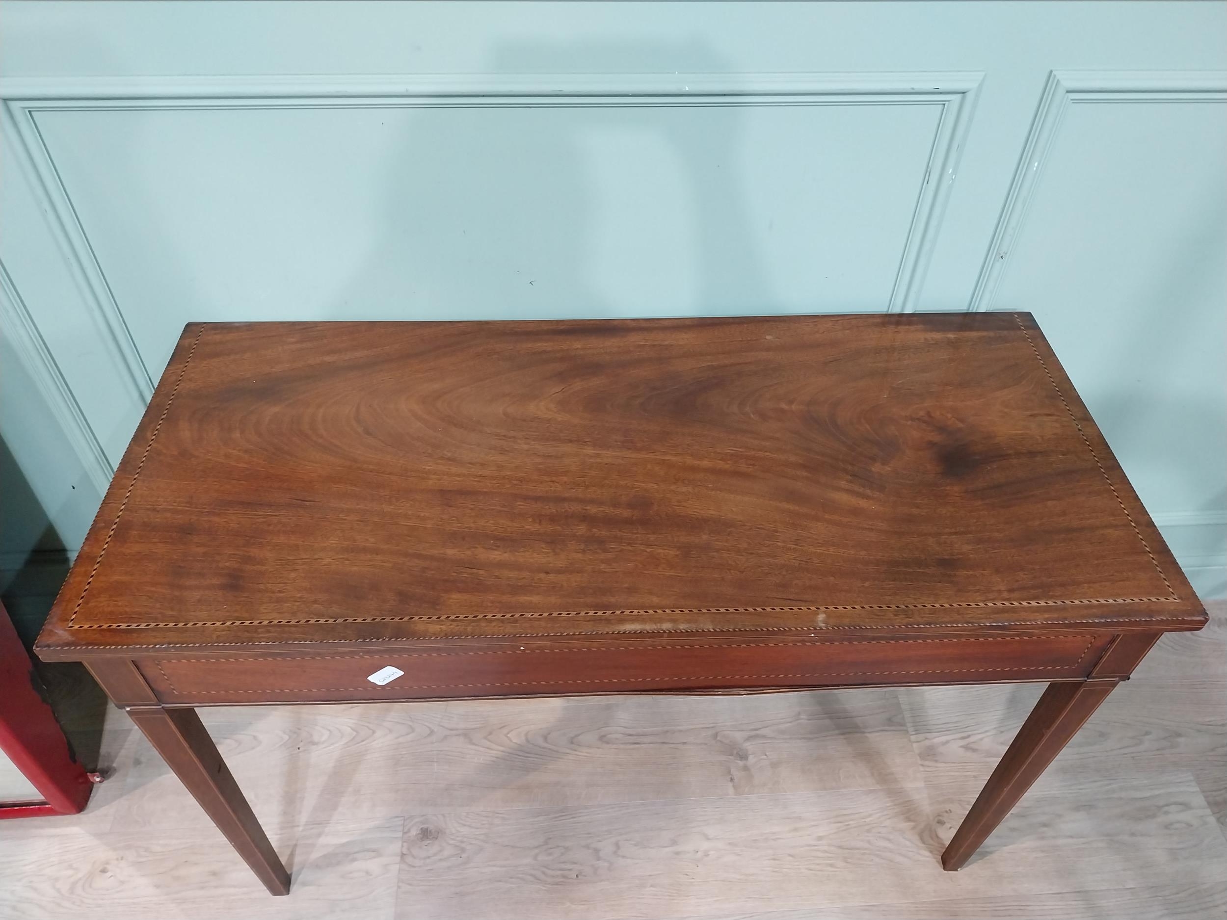 19th C. inlaid mahogany side table on four tapered legs. {75 cm H x 119 cm W x 53 cm D}.
