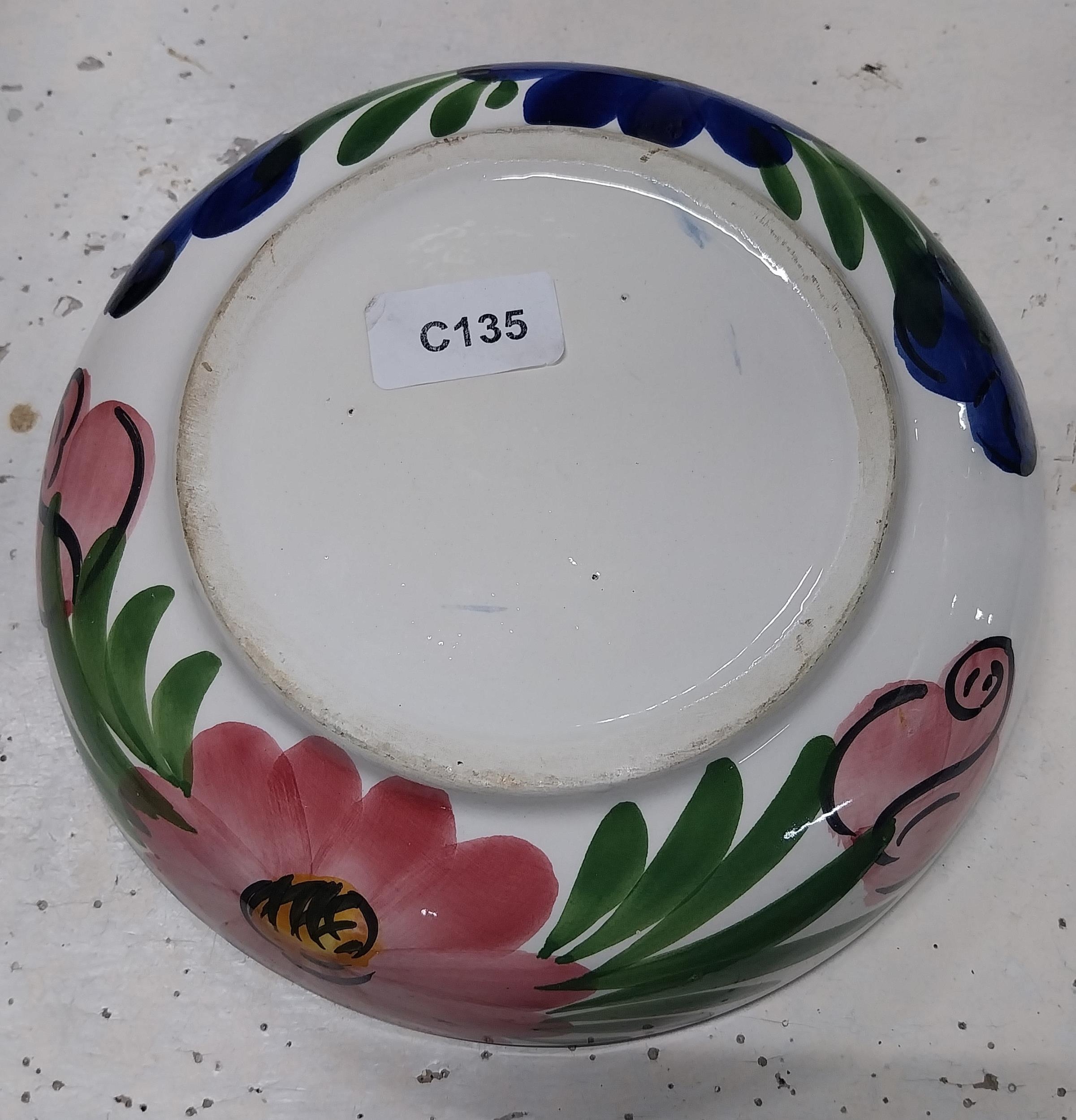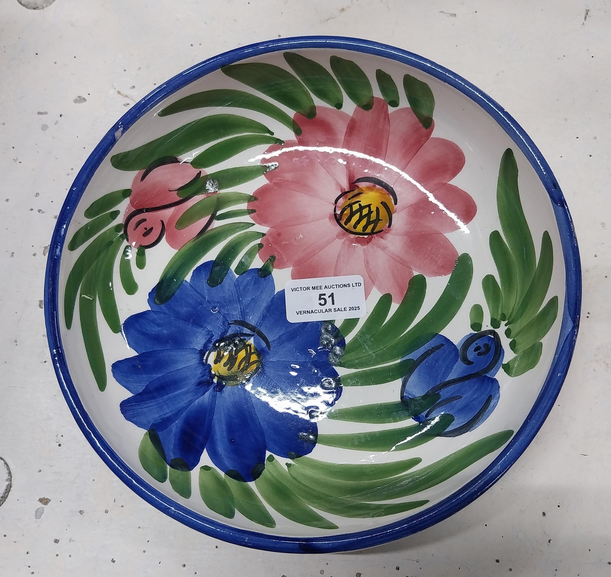 20th C. brushware dish decorated with flowers. {5 cm H x 32 cm Dia.}.