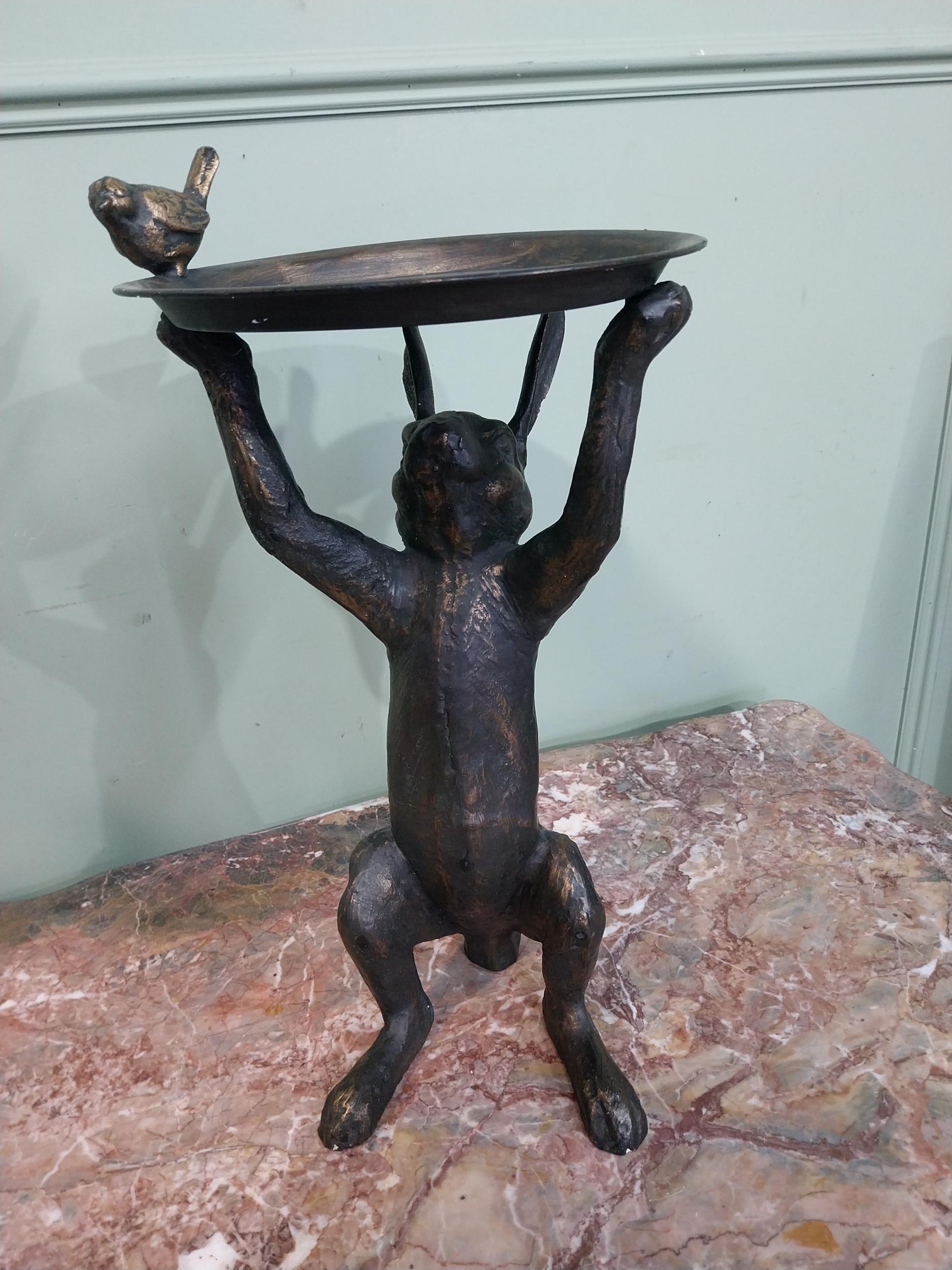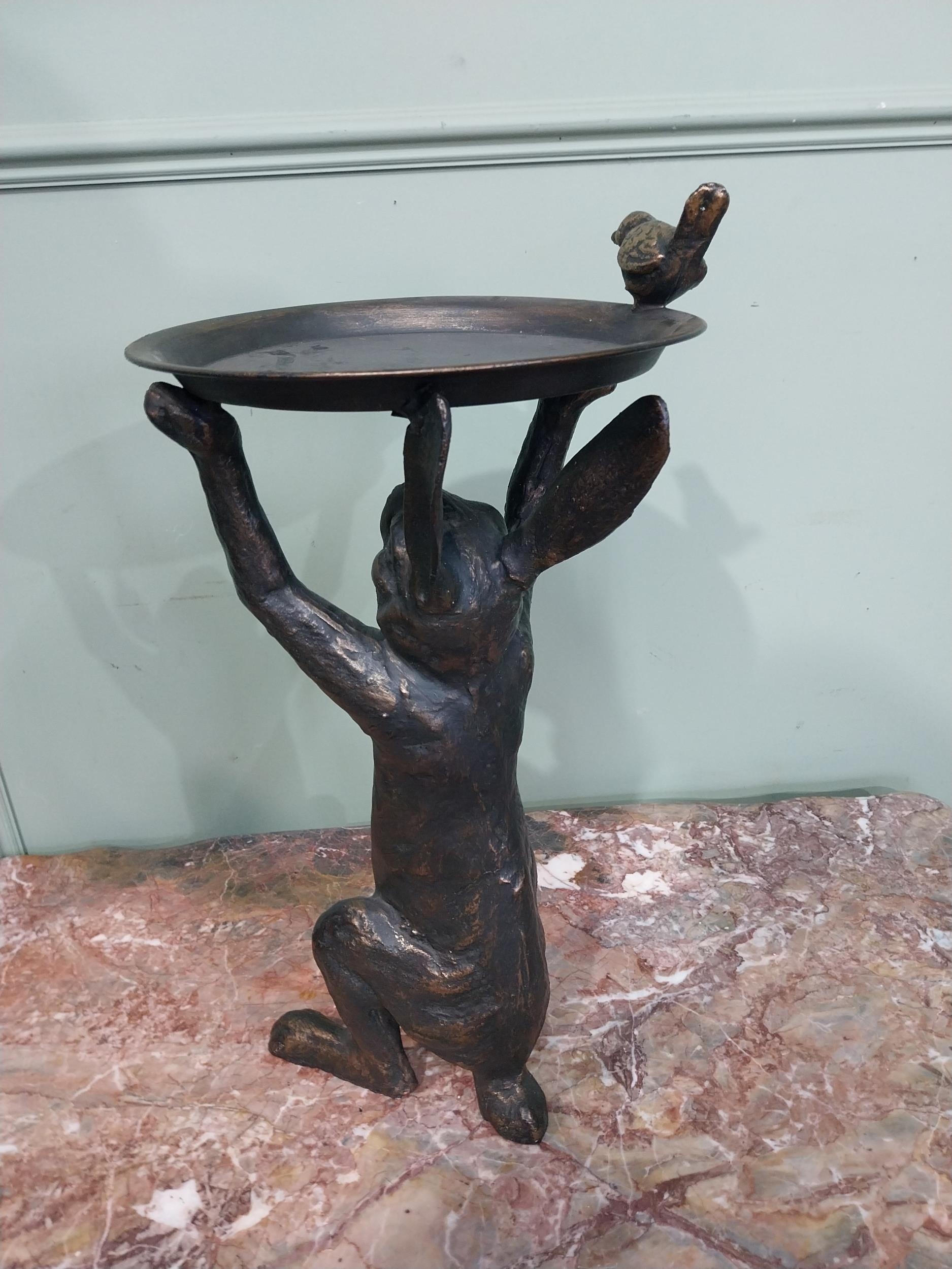Cast bronzed alloy lamp table in the form of a Rabbit. {53 cm H x 29 cm Dia.}.