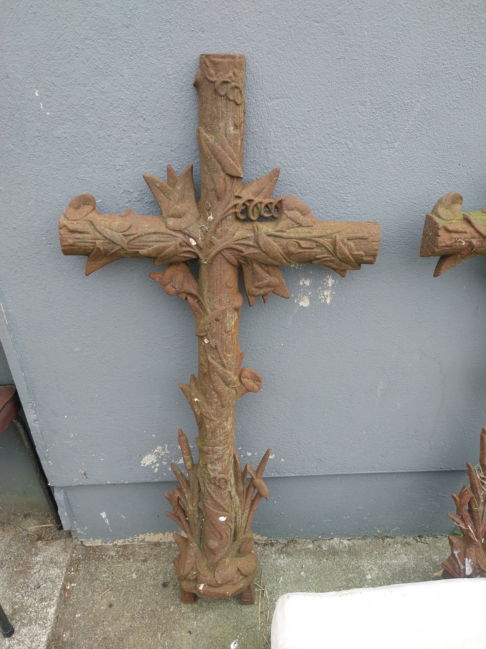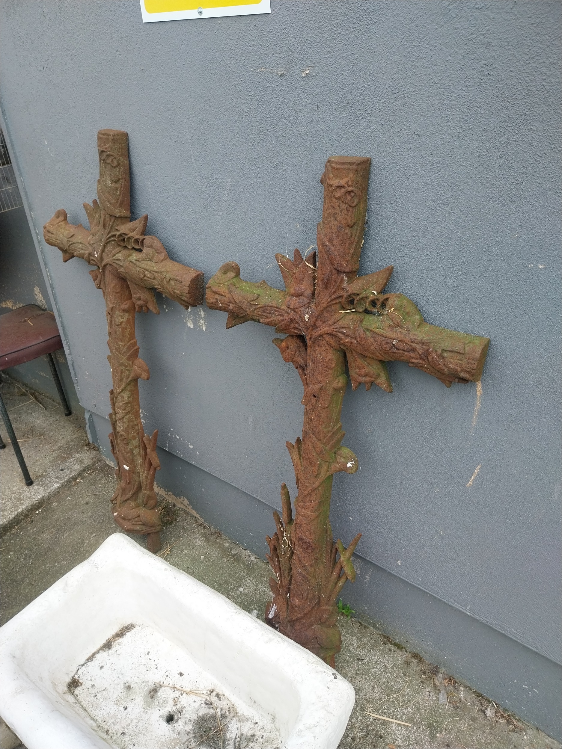 Pair of 19th C. decorative cast iron crosses. {118 cm H x 54 cm W}.