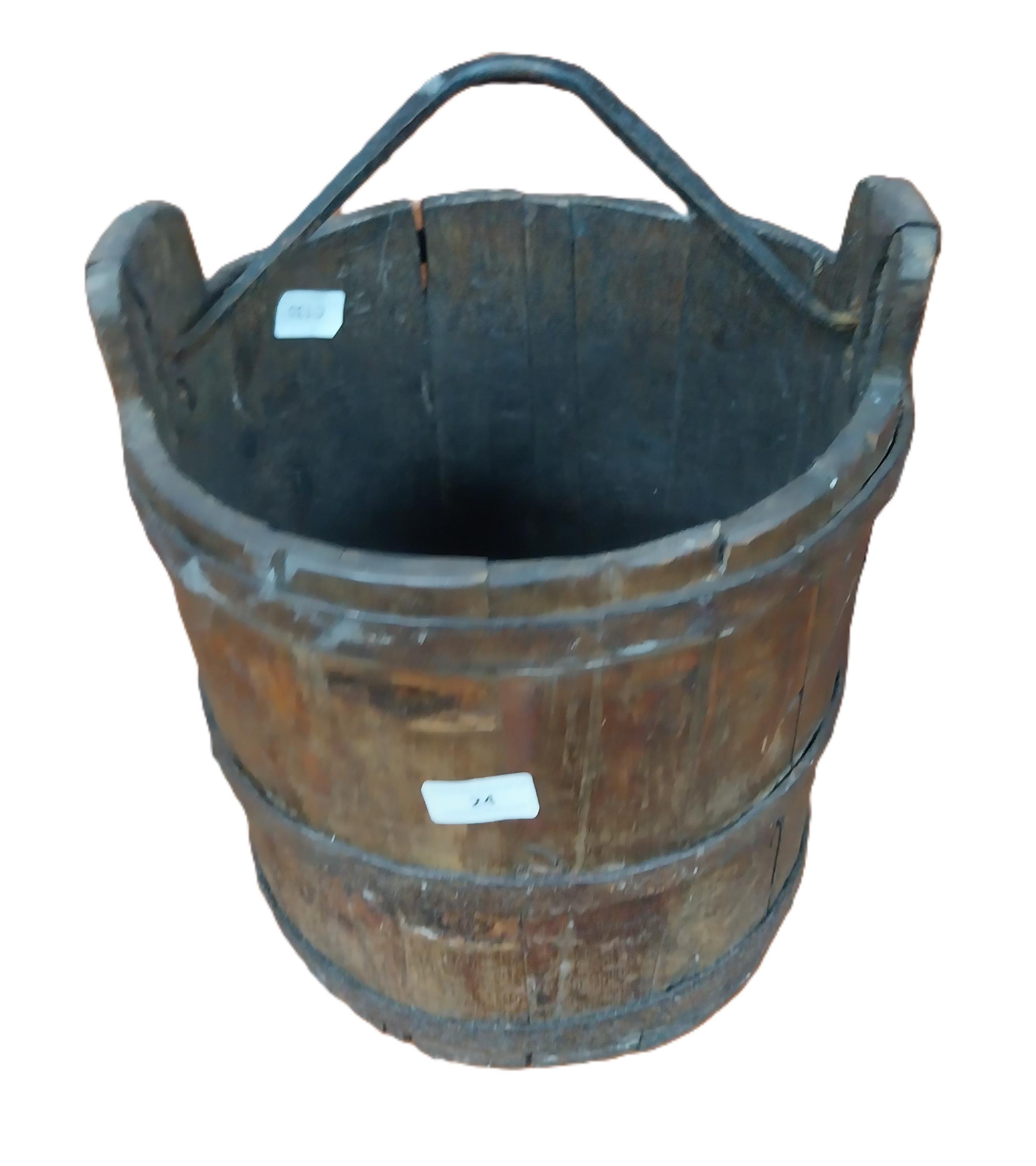 19th C. pine and metal bound water bucket. {35 cm H x 31 cm Dia.}.