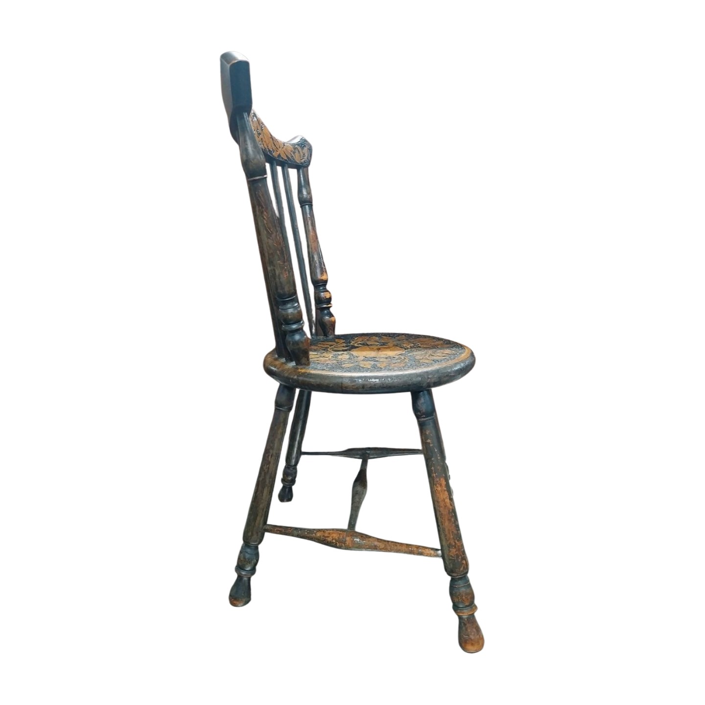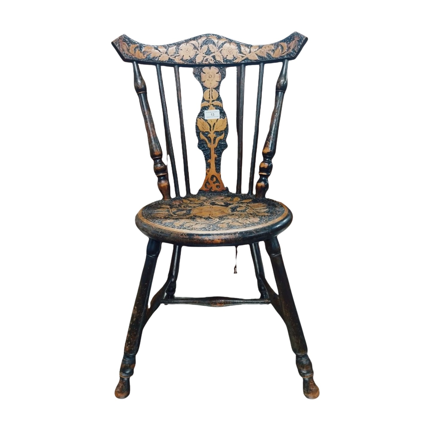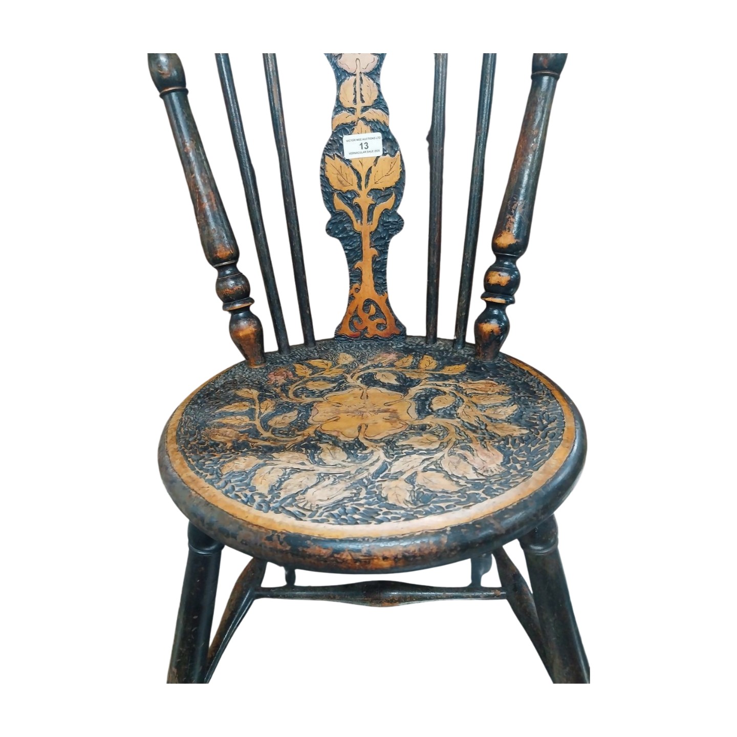 Victorian beech pokerwork chair. {75 cm H x 34 cm W x 39 cm D}.