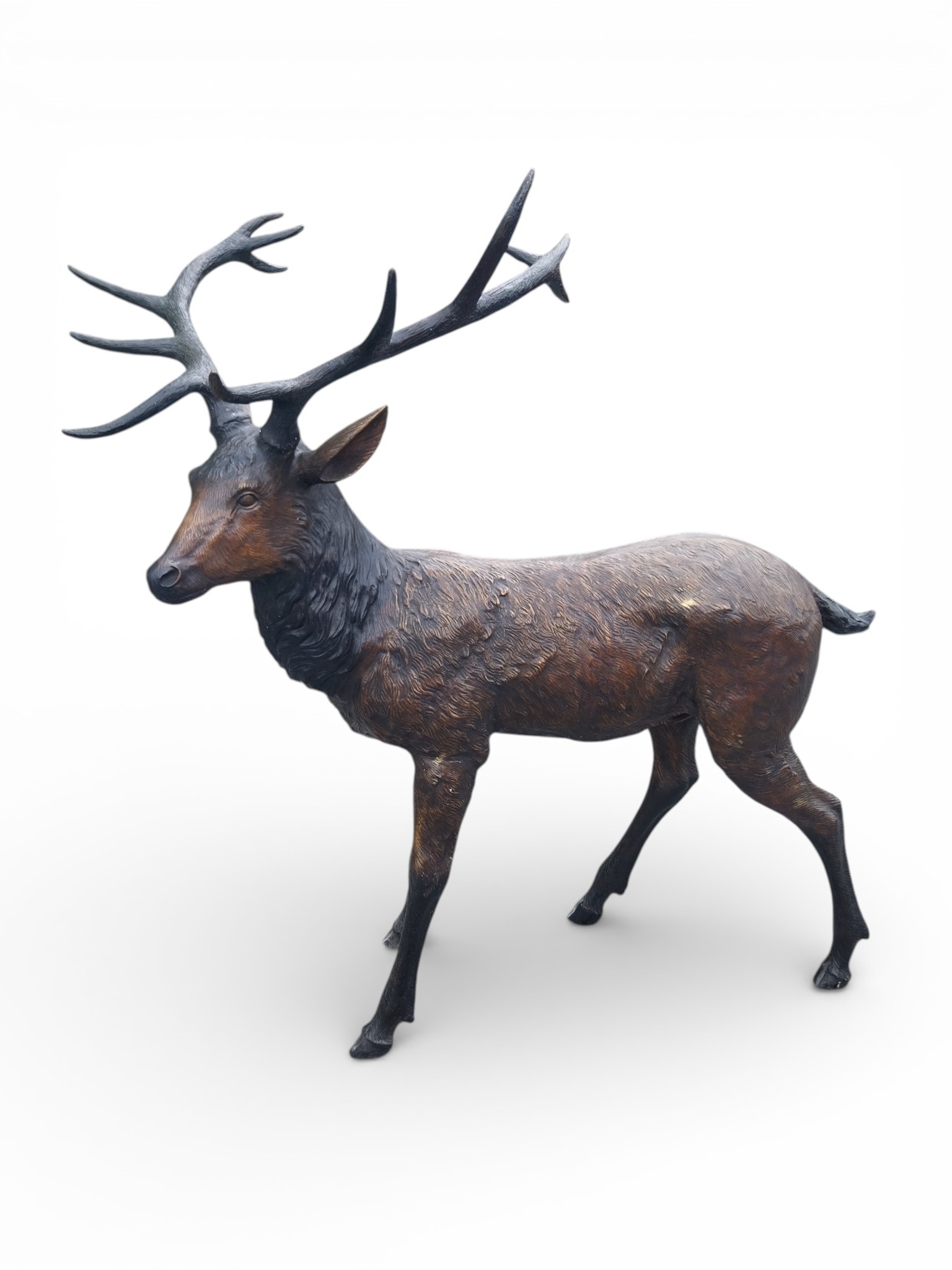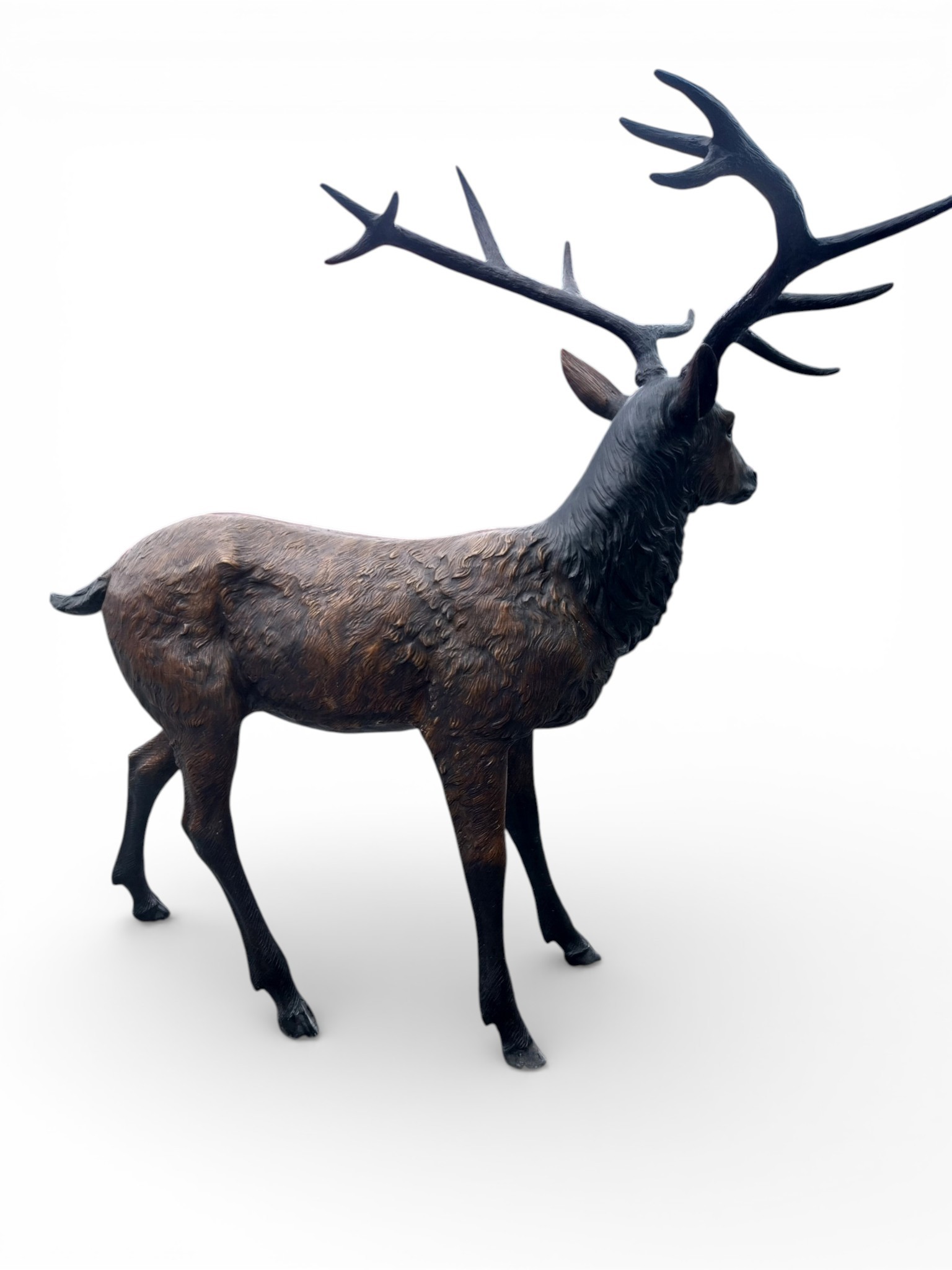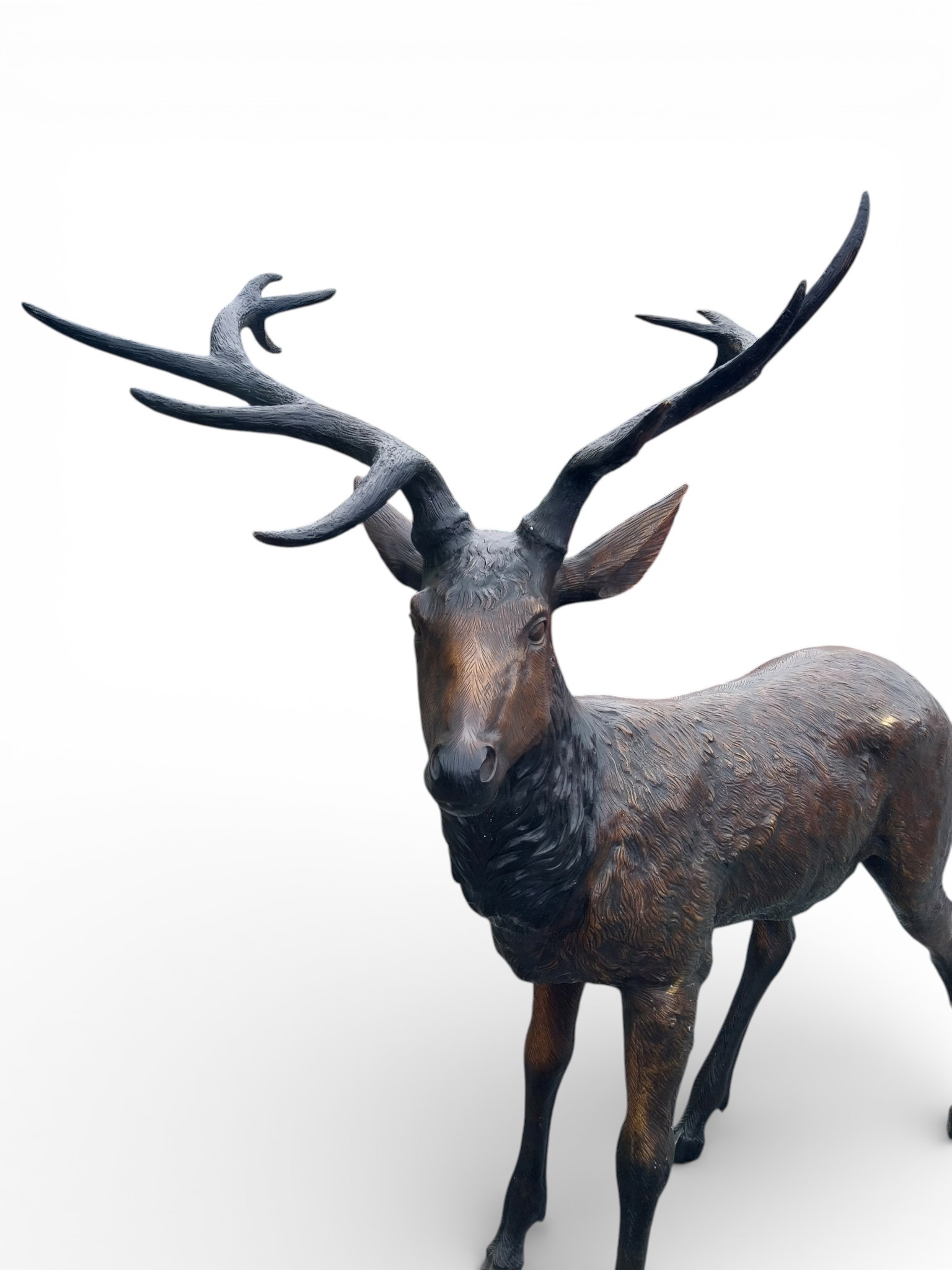 Good quality bronze statue of a majestic Stag. {158 cm H x 157 cm W x 90 cm D}.