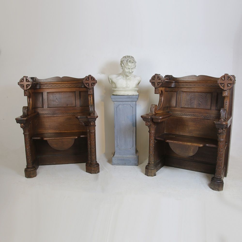 Pair Of Superbly Hand Carved Oak Bishops Throne Chairs Dating From Around 1840. Removed From A High Church Of England Near Canterbury