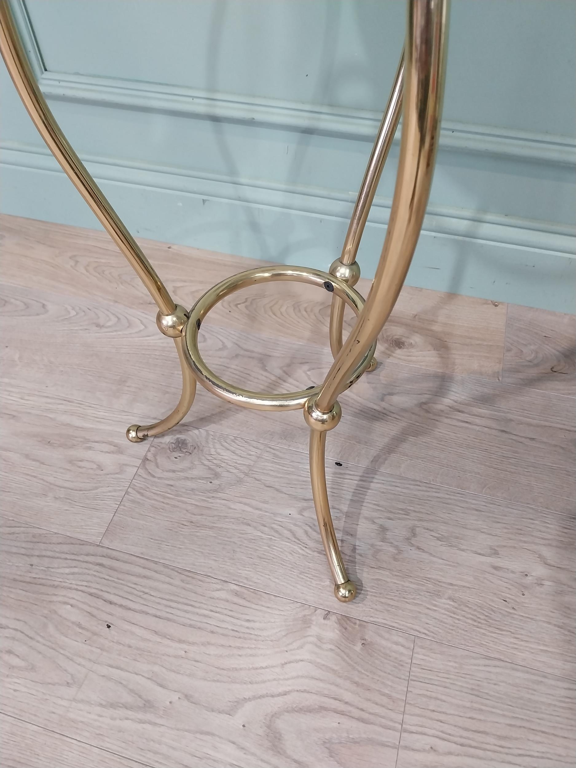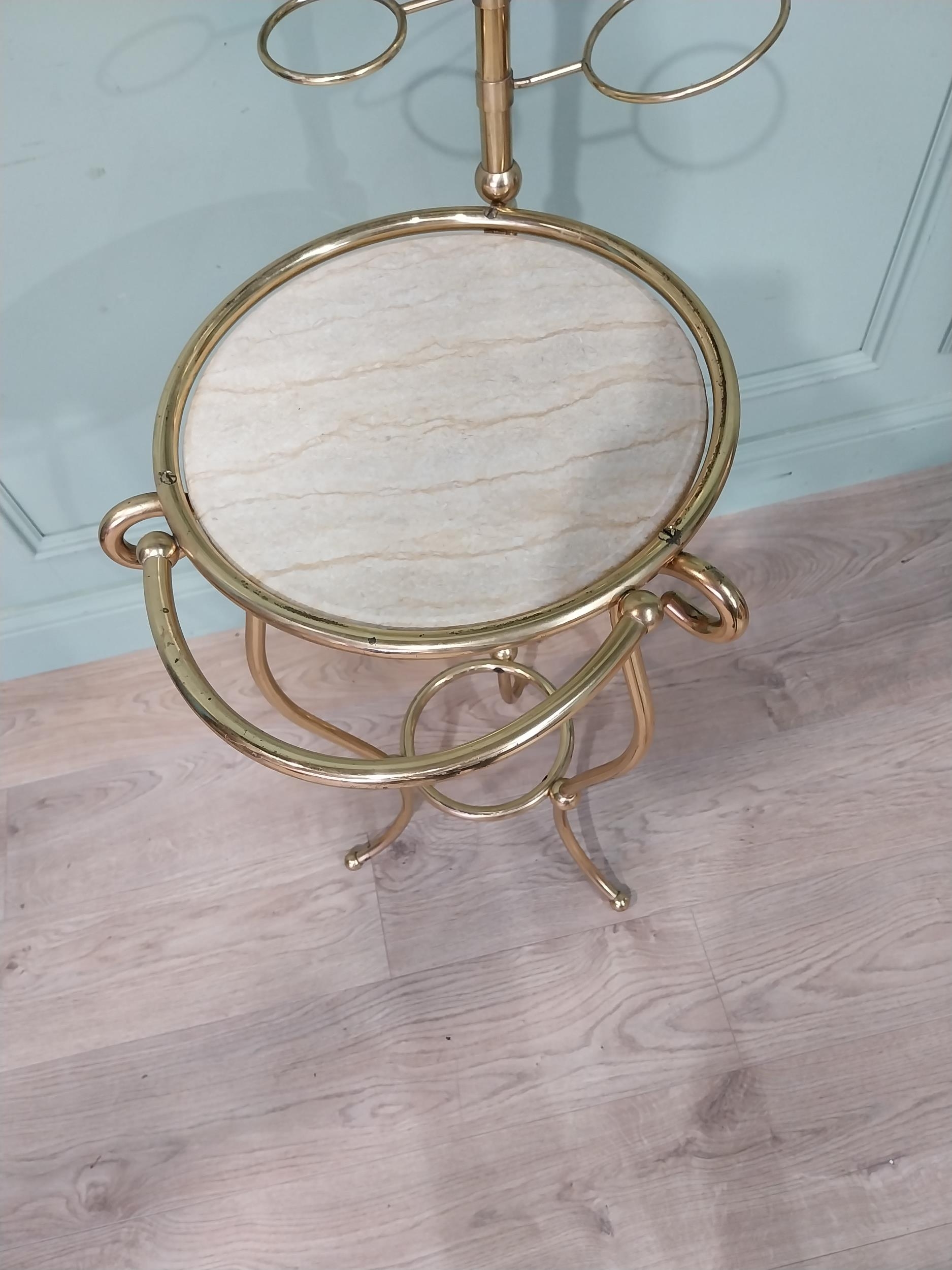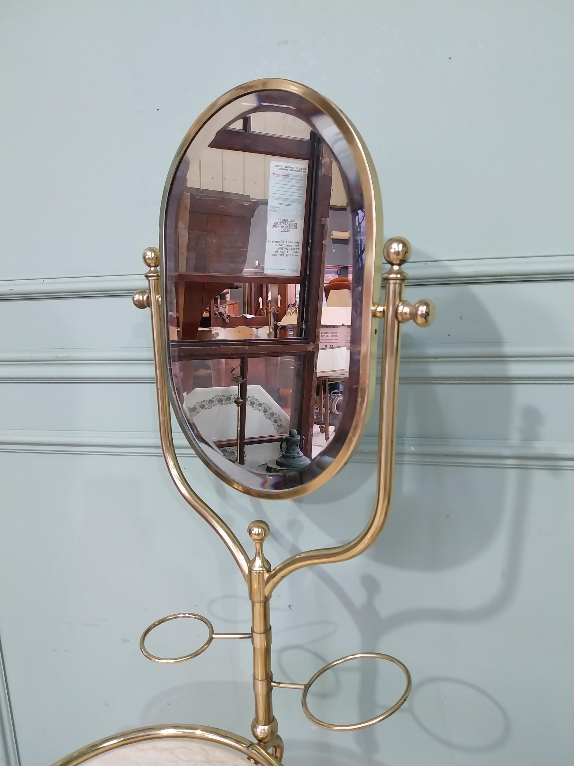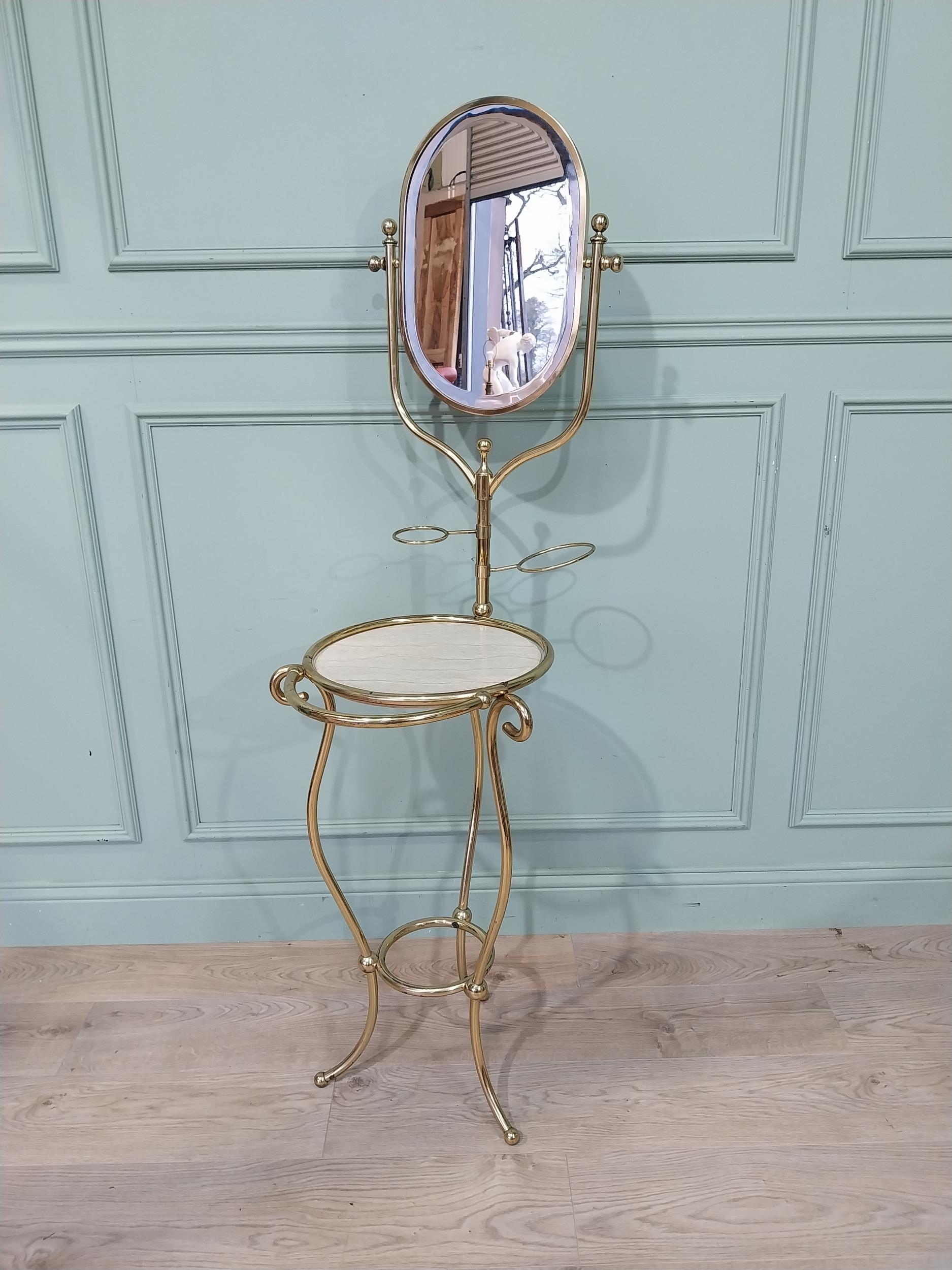 Rare early 20th C. brass Gentleman's washstand with mirrored back and inset marble top with towel rail to front. {151 cm H x 42 cm W x 56 cm D}.