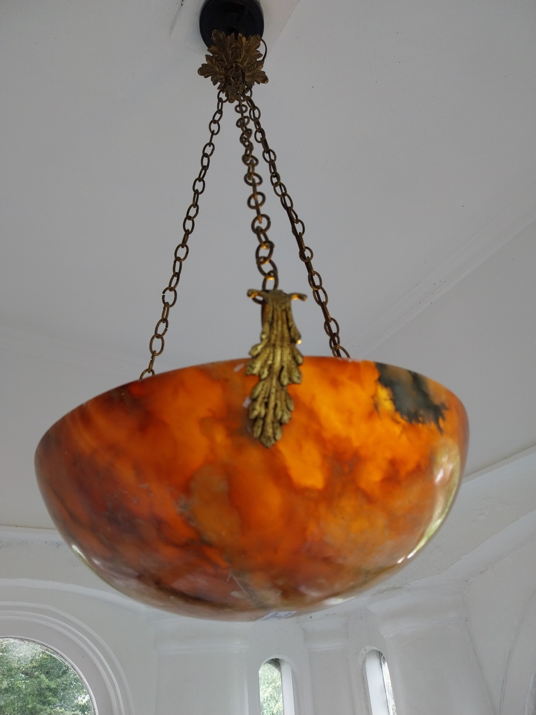 19th. C. French alabaster light shade, with ormulo mounts. { 76cm H X 35cm Dia }.
