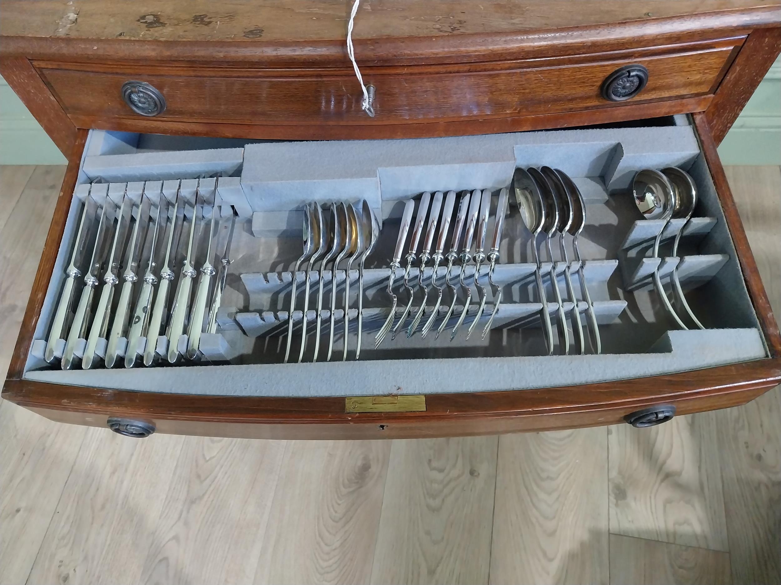 20th C. table canteen of cutlery on cabriole legs. {75 cm H x 74 cm W x 50 cm D}.