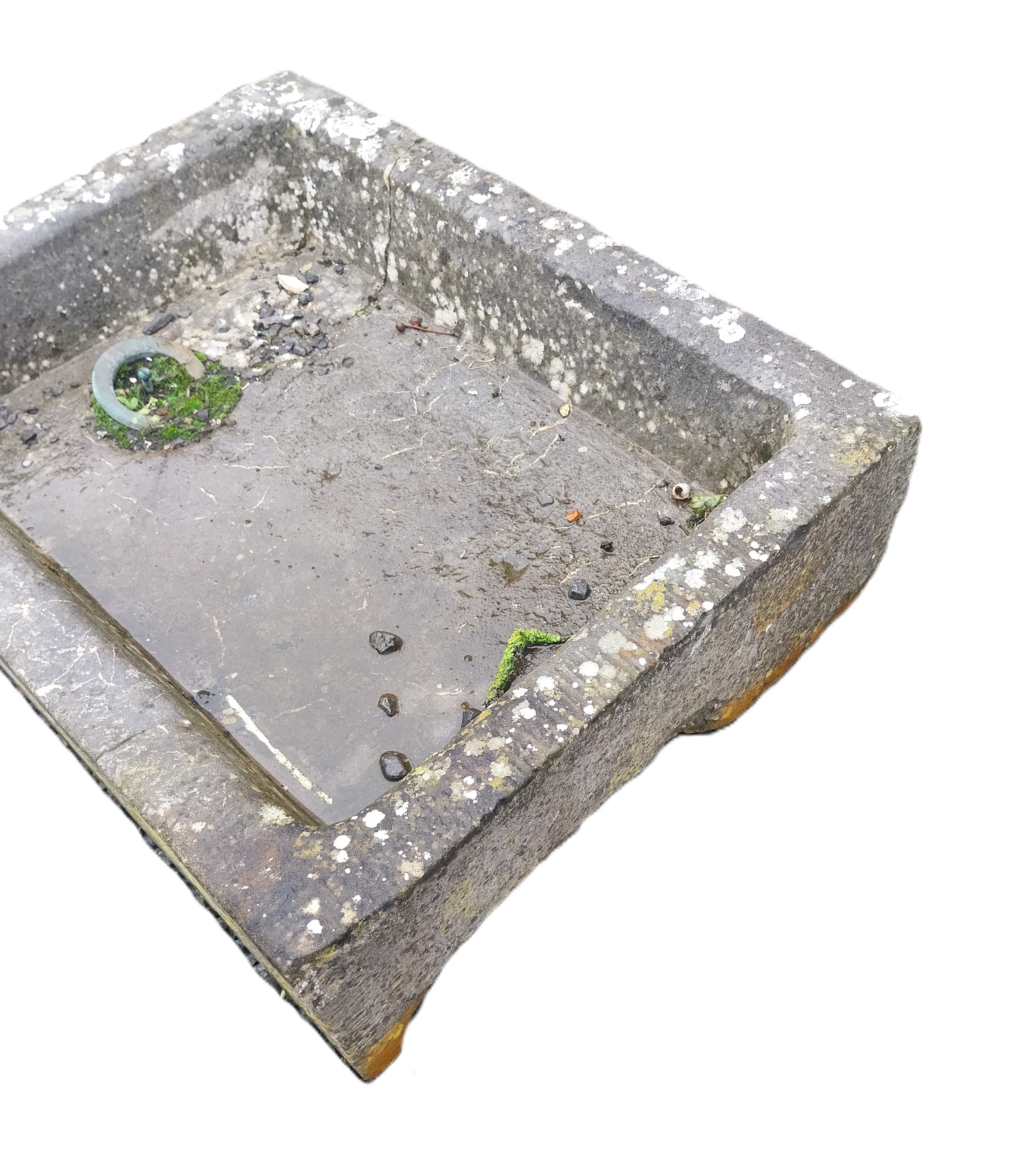 Early 19th C. limestone sink. {18 cm H x 66 cm W x 50 cm D}.