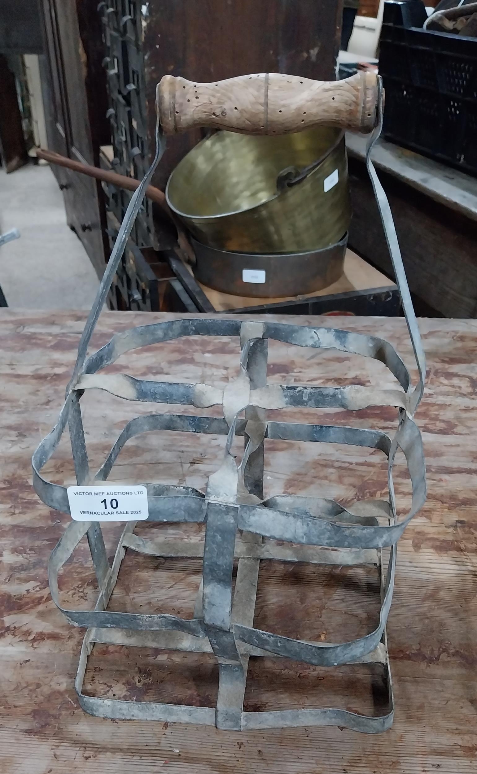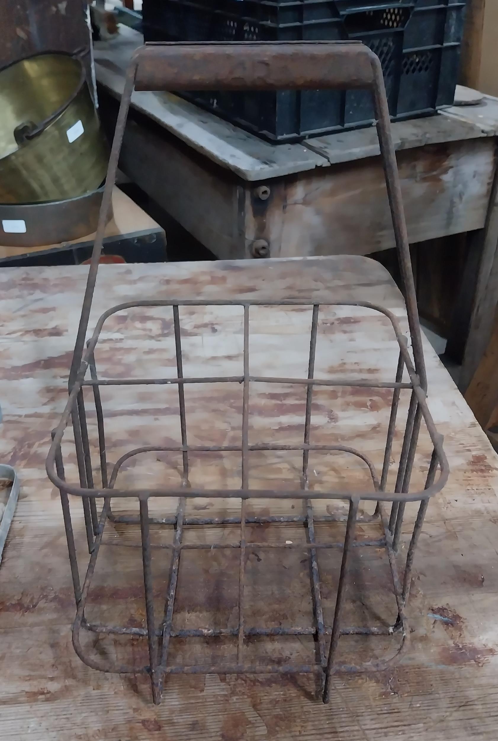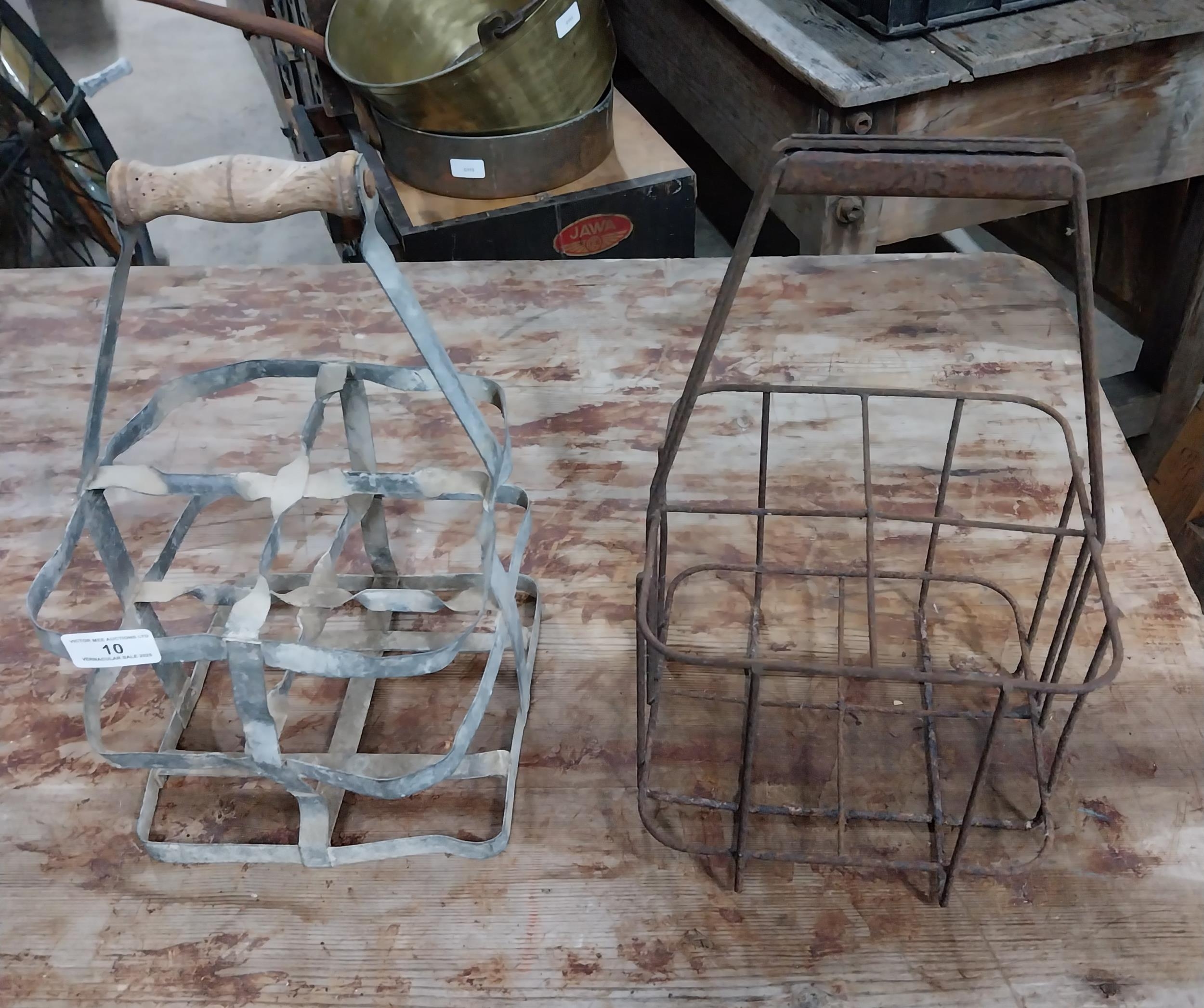 Two 20th C. metal milk crates. {36 cm H x 31 cm Dia.}.