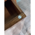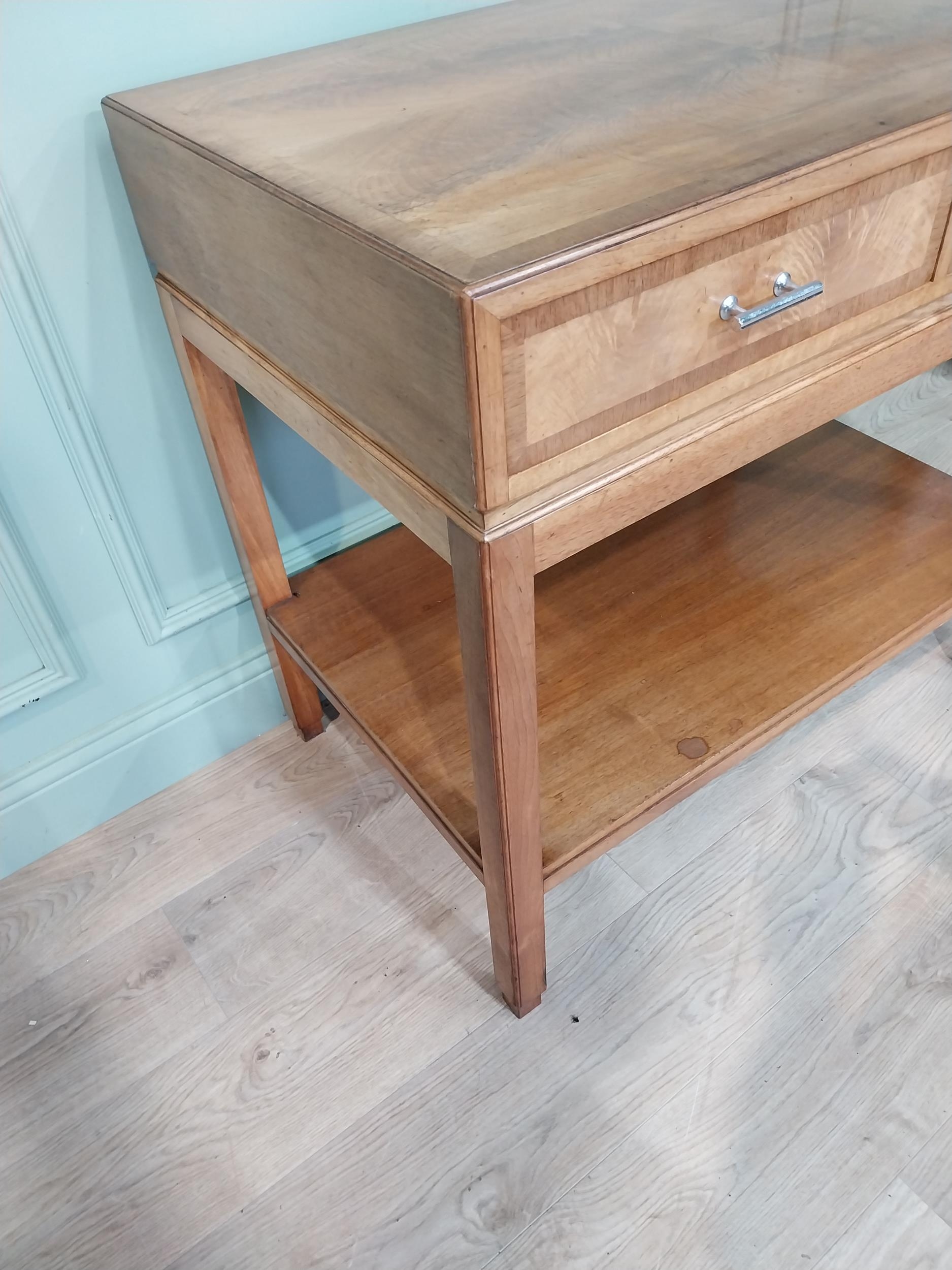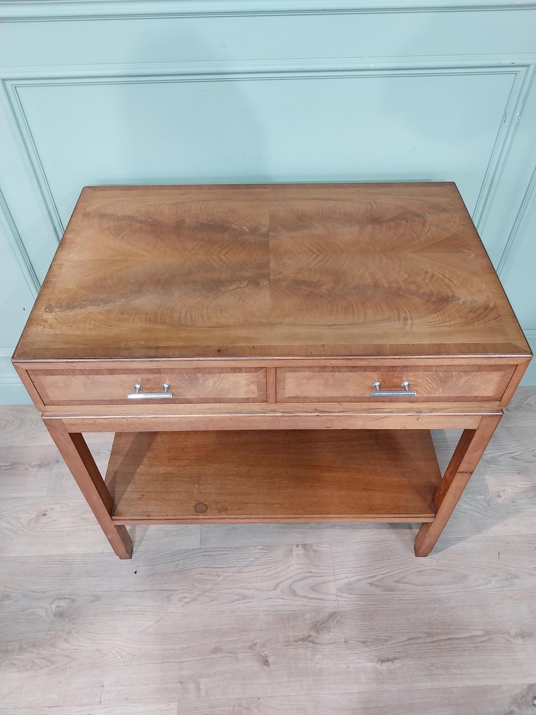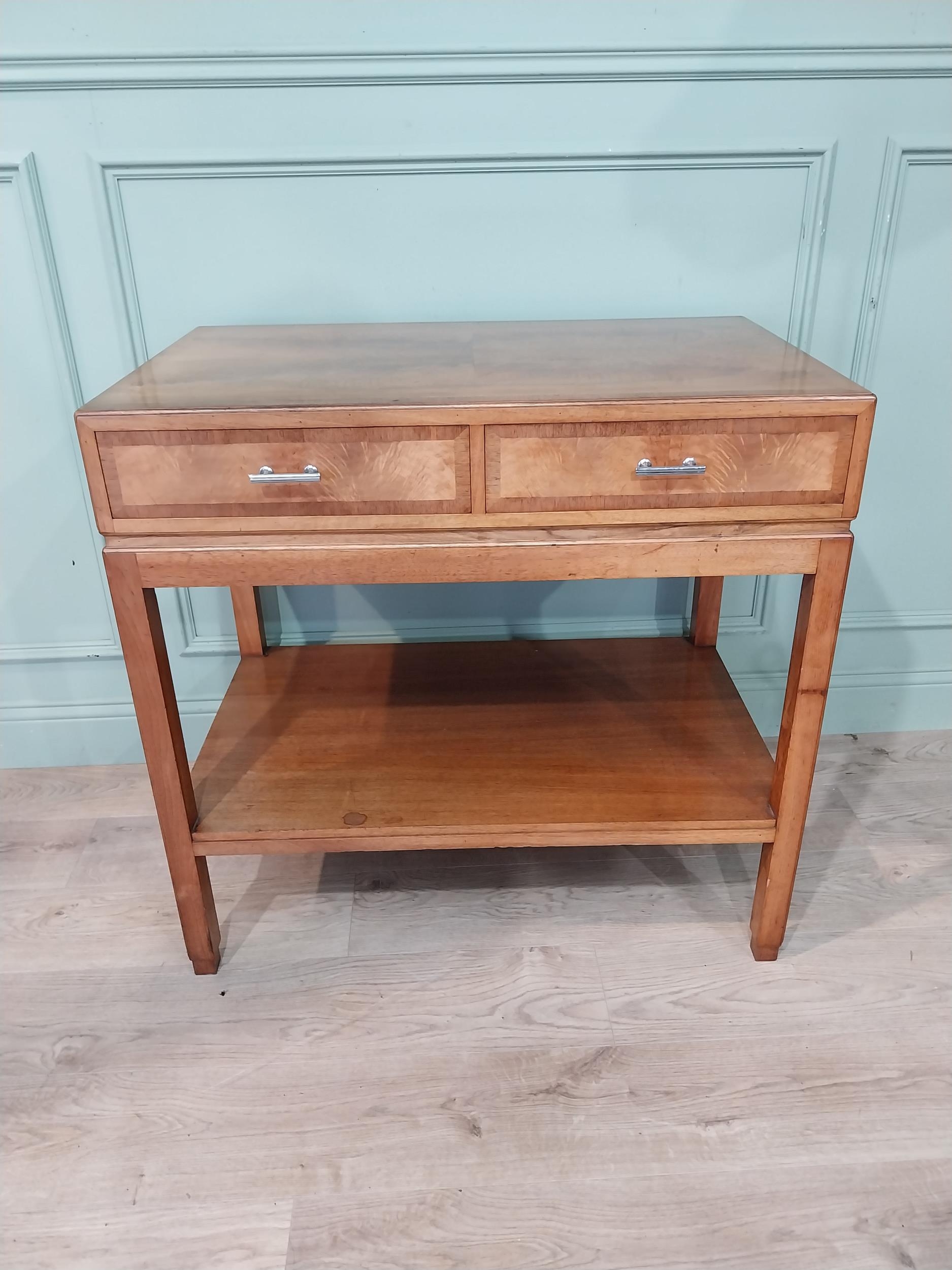 1950's walnut side table with two drawers in the frieze by Heal's of London. {85 cm H x 87 cm W x 57 cm D}.