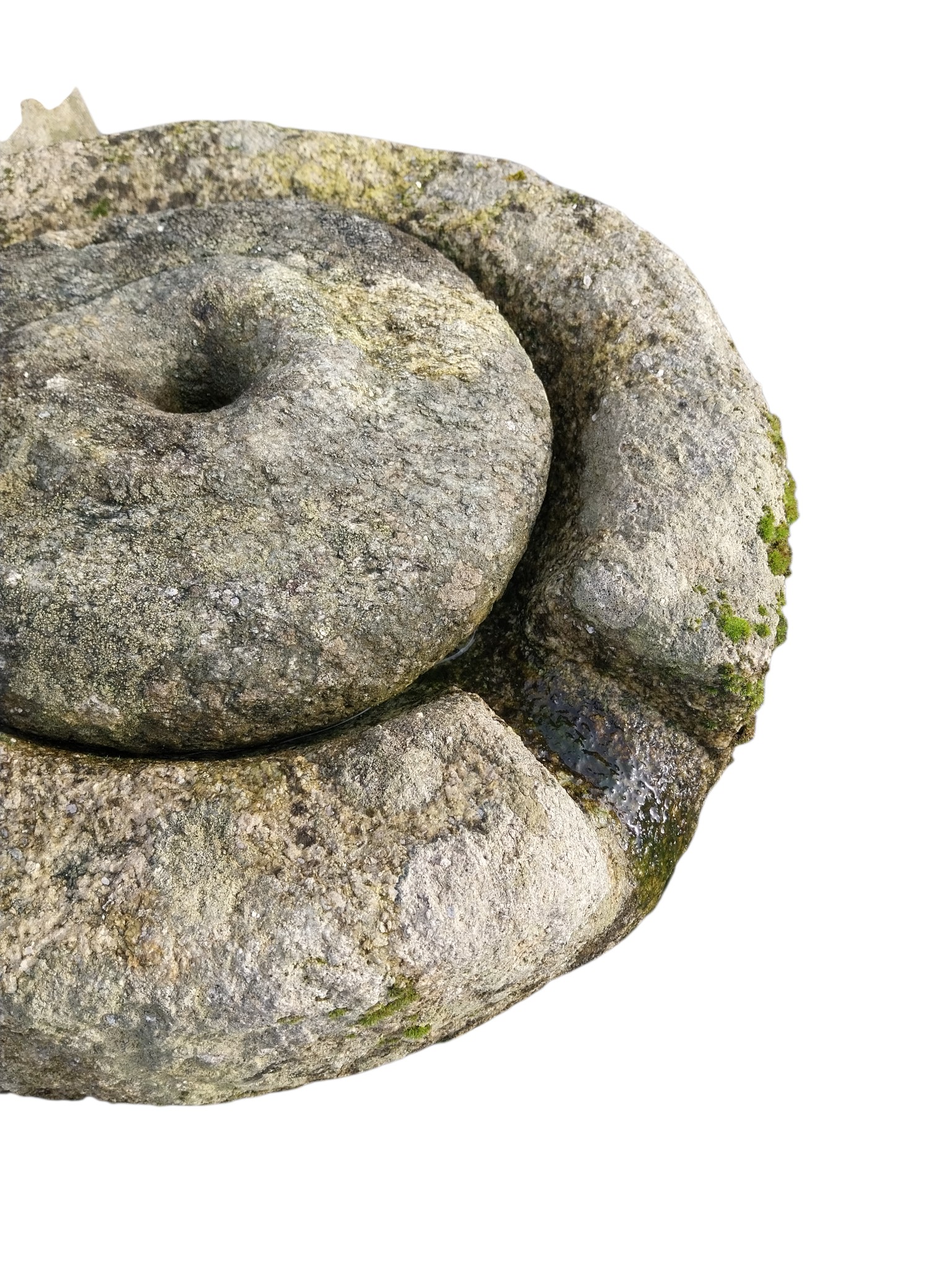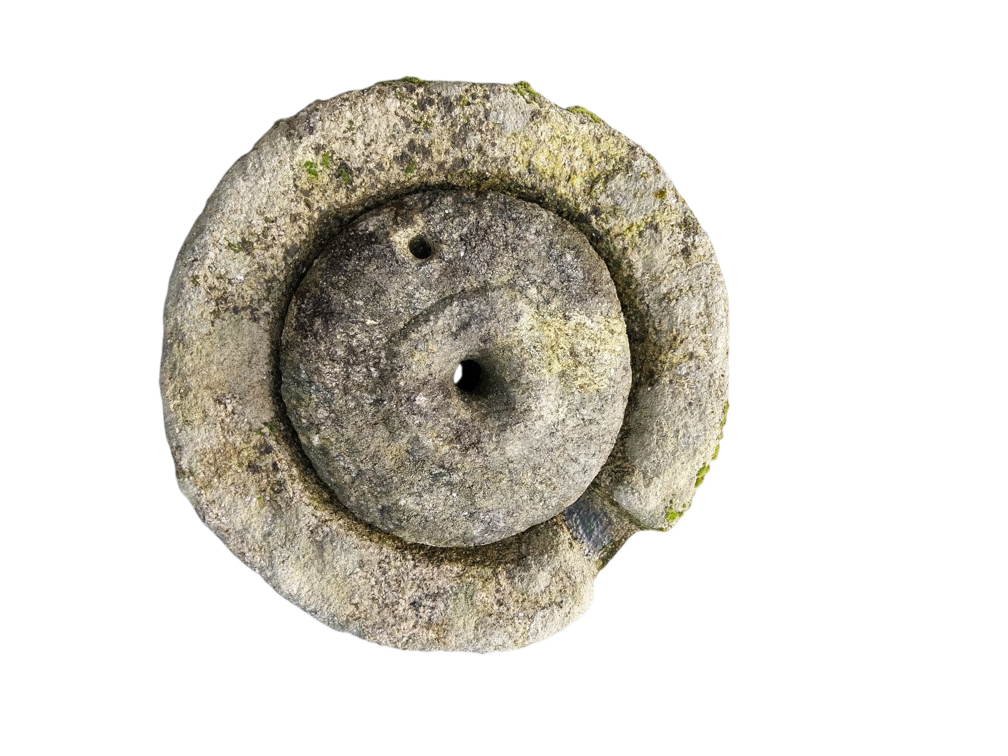19th C. granite grinding stone. {12 cm H x 52 cm Dia.}. NOT ON SITE FOR VIEWING