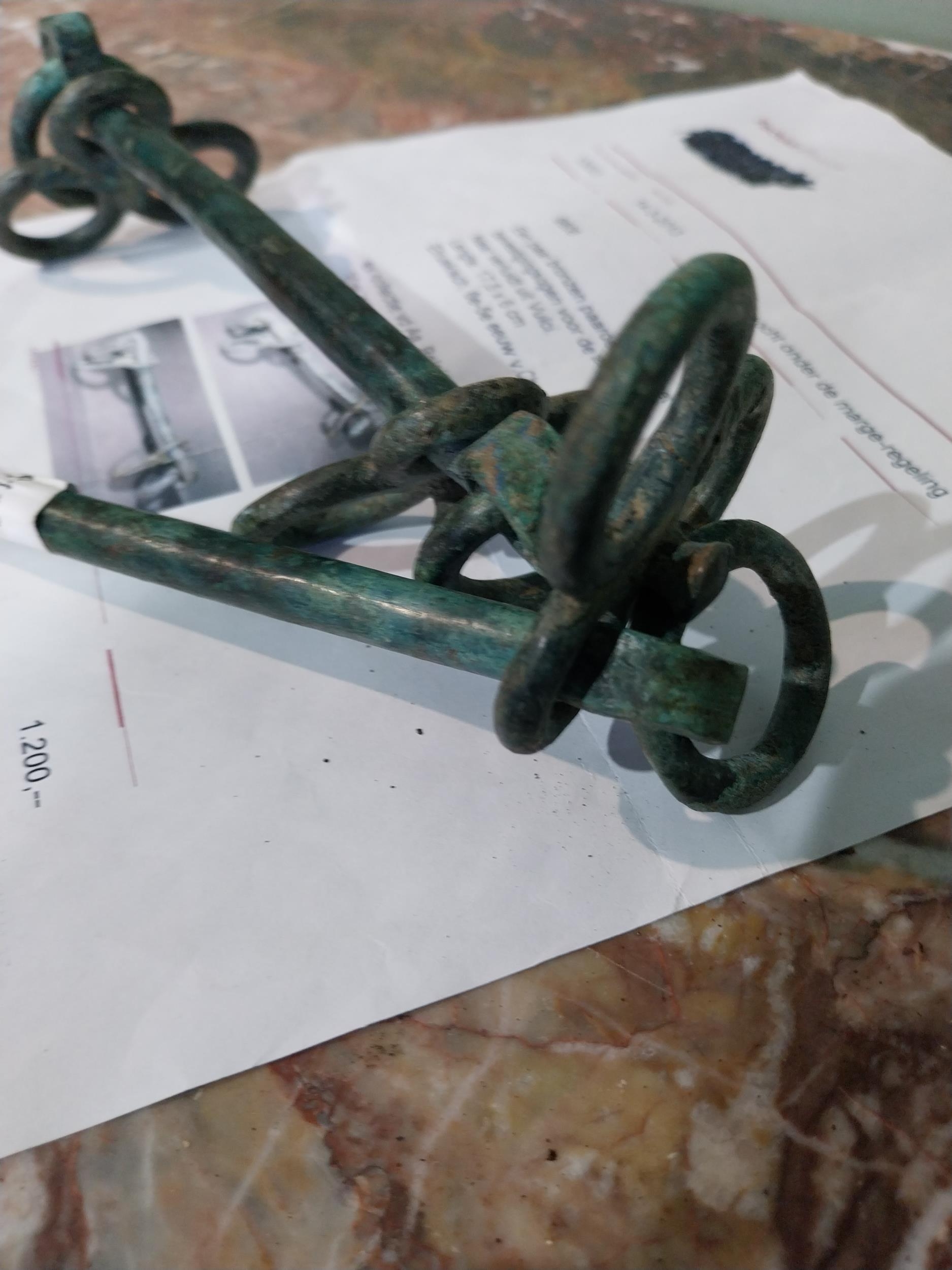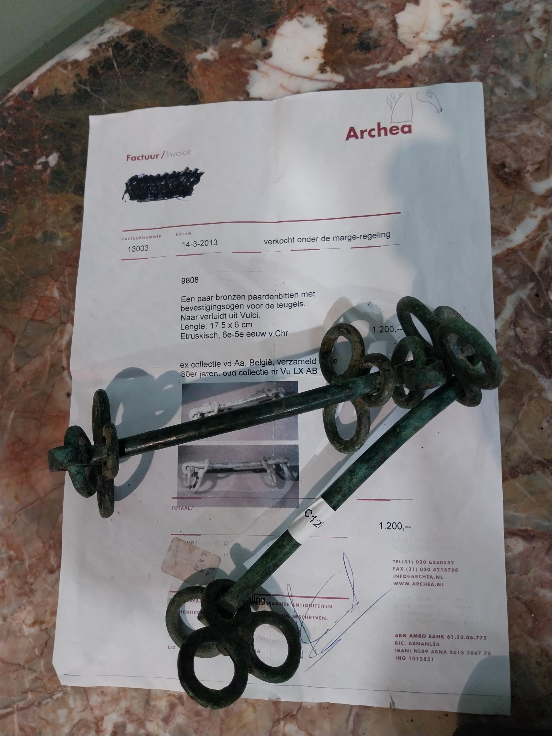 Unusual bronze Horse bits. {16 cm H L}.