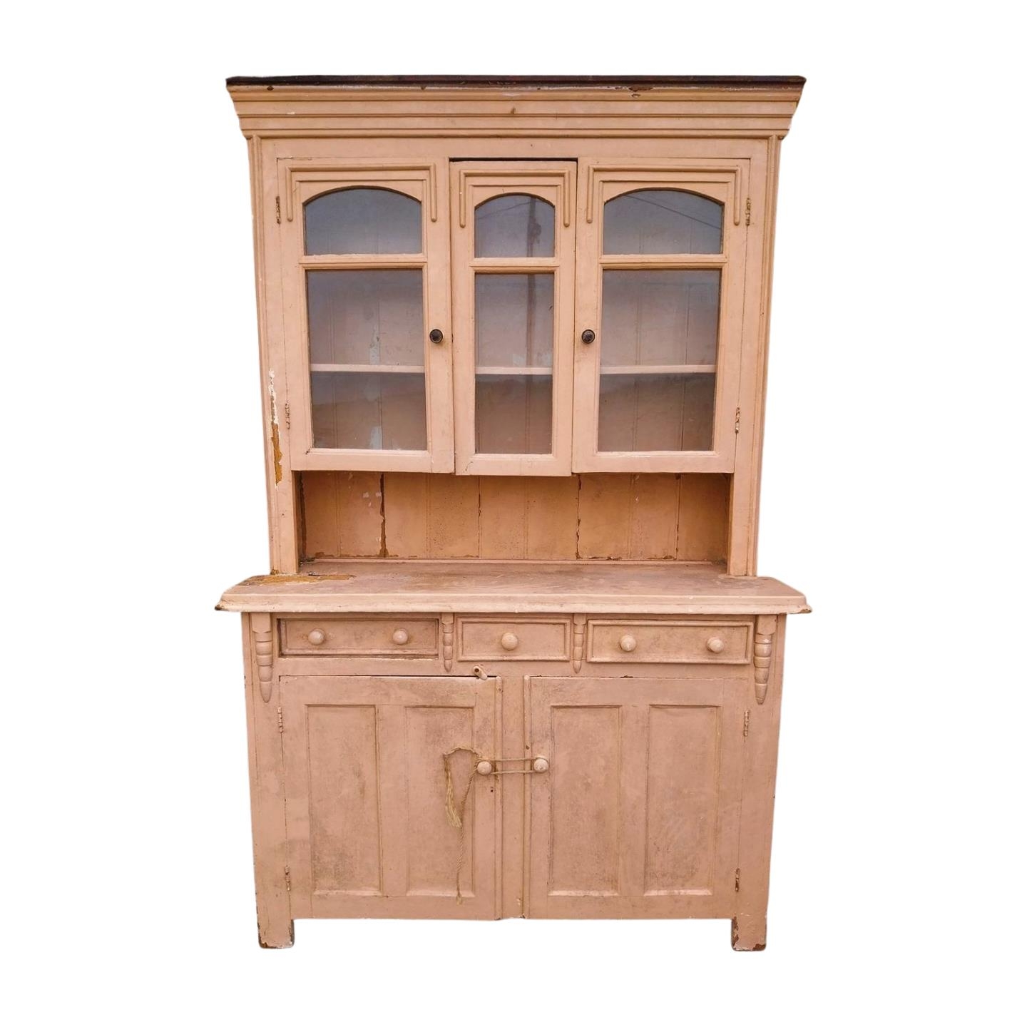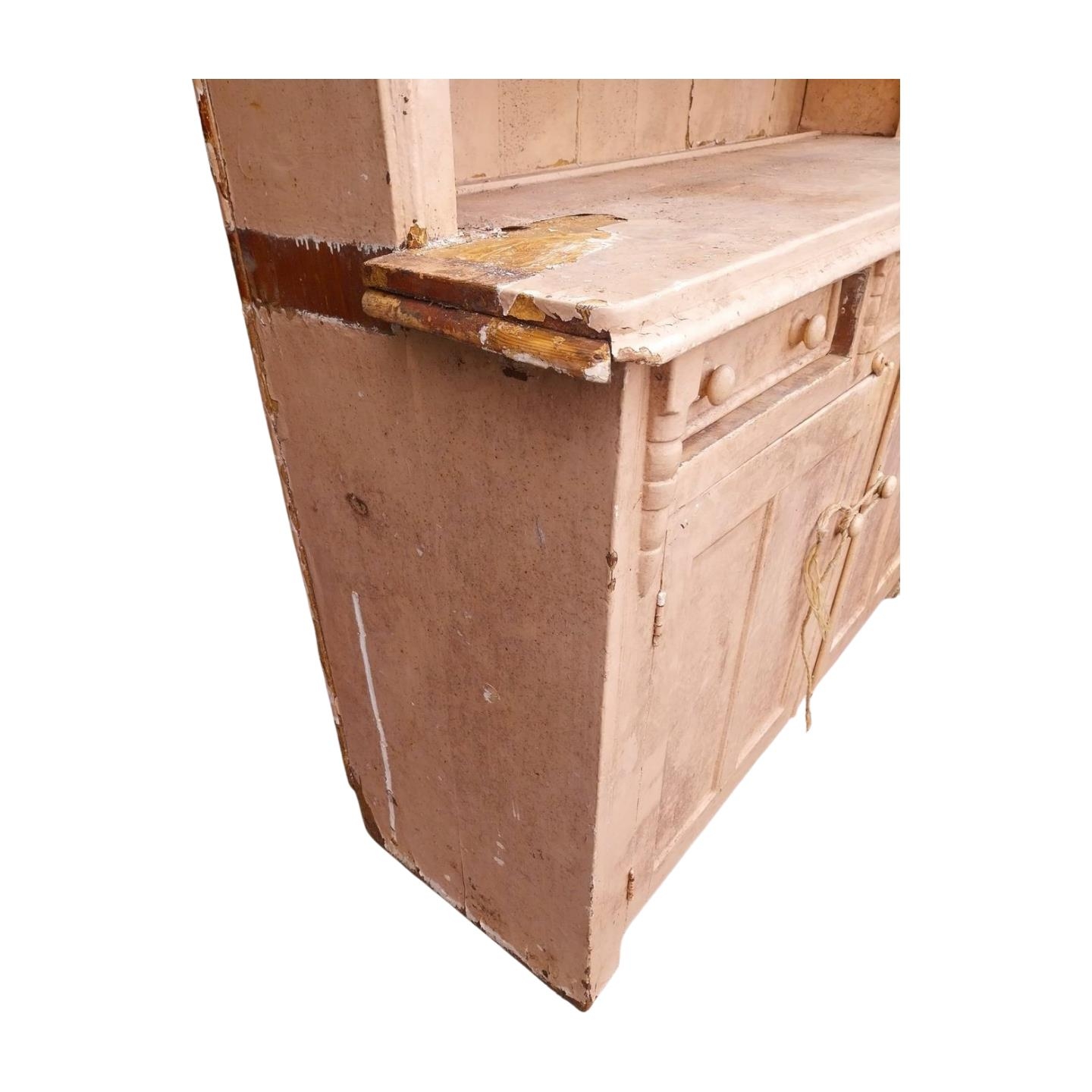 19th C. painted pine Galway Athy kitchen dresser. {131 cm H x 150 cm W x 54 cm D}.