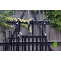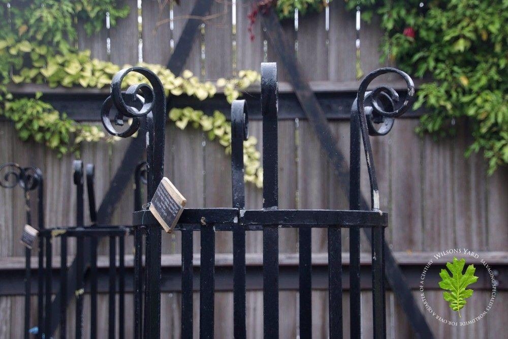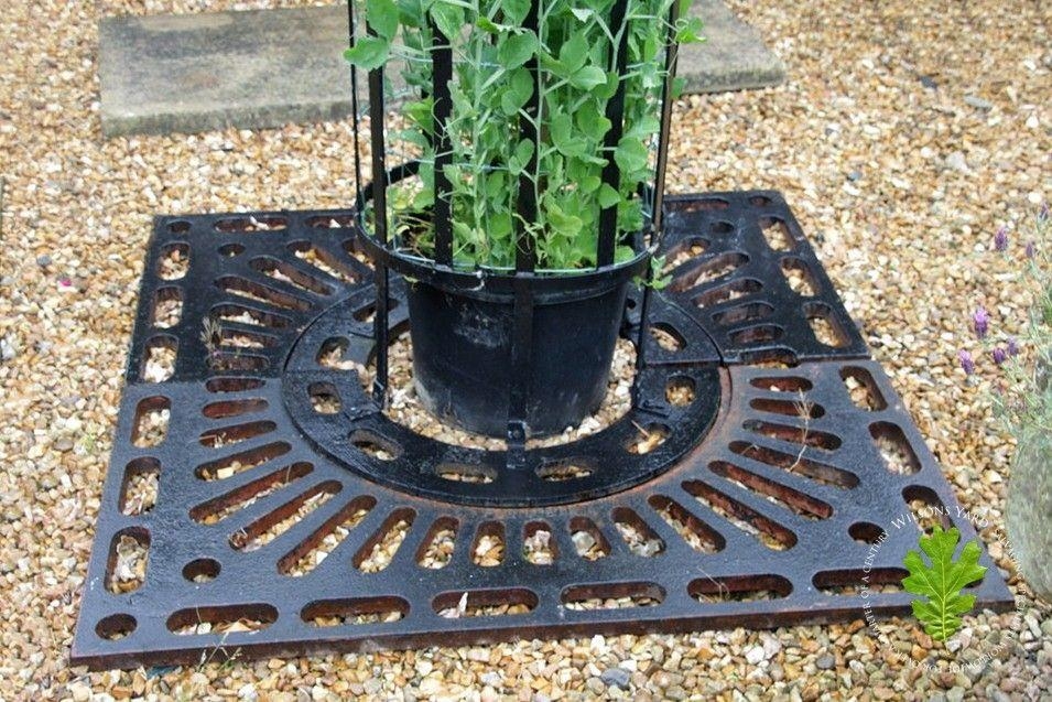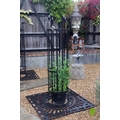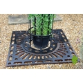 Pair of wrought iron tree protectors with cast iron square base. {185 cm H x 120 cm W x 120 cm D}.
