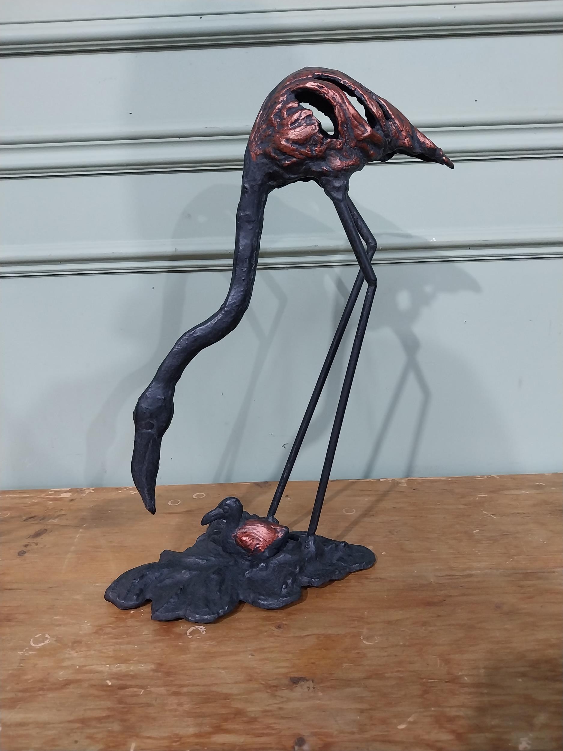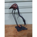 Cast iron model of a Heron. {48 cm H x 36 cm W x 20 cm D}.